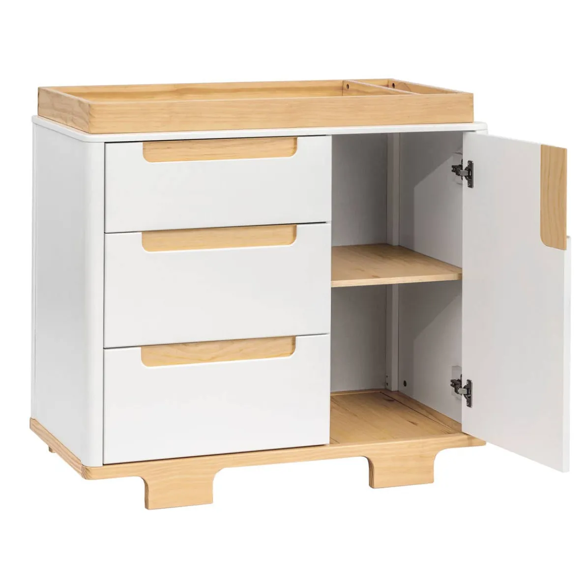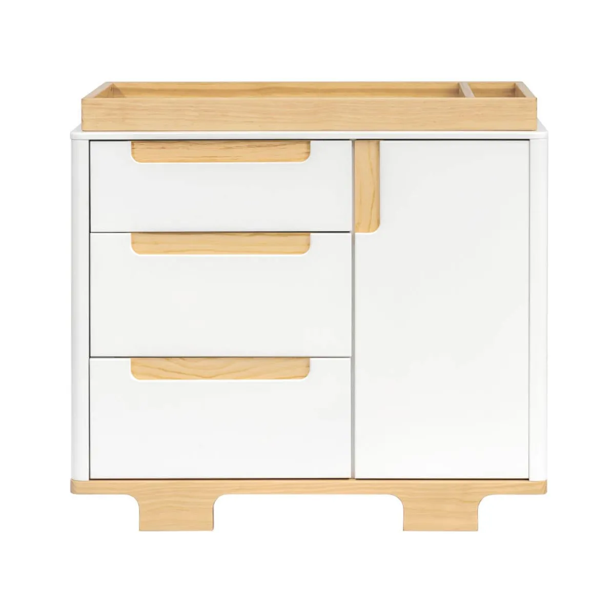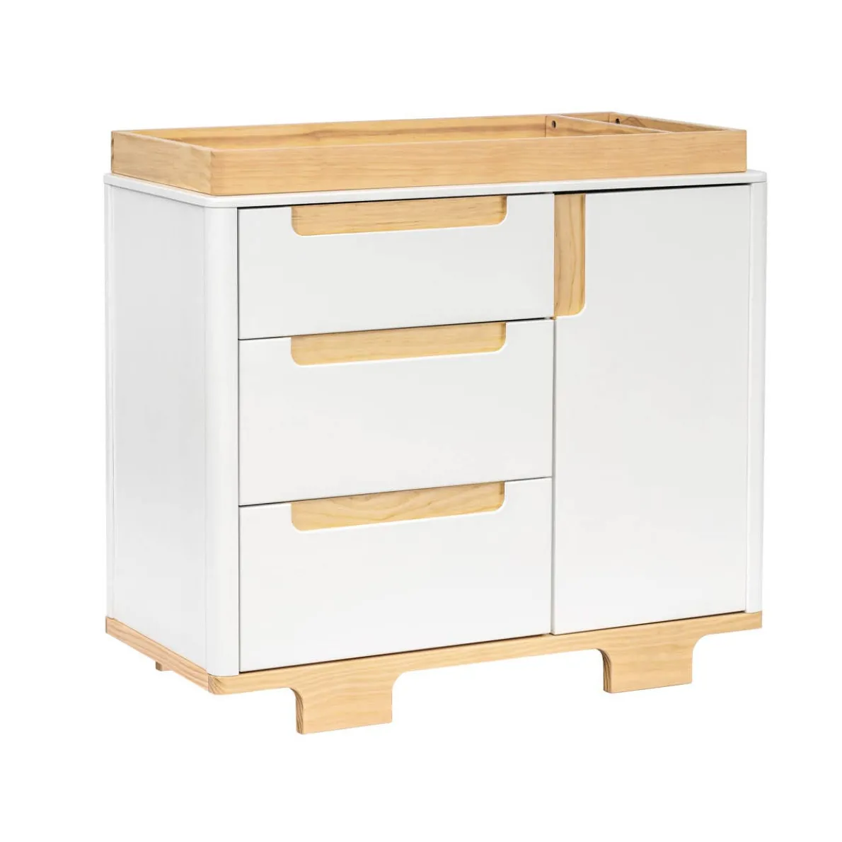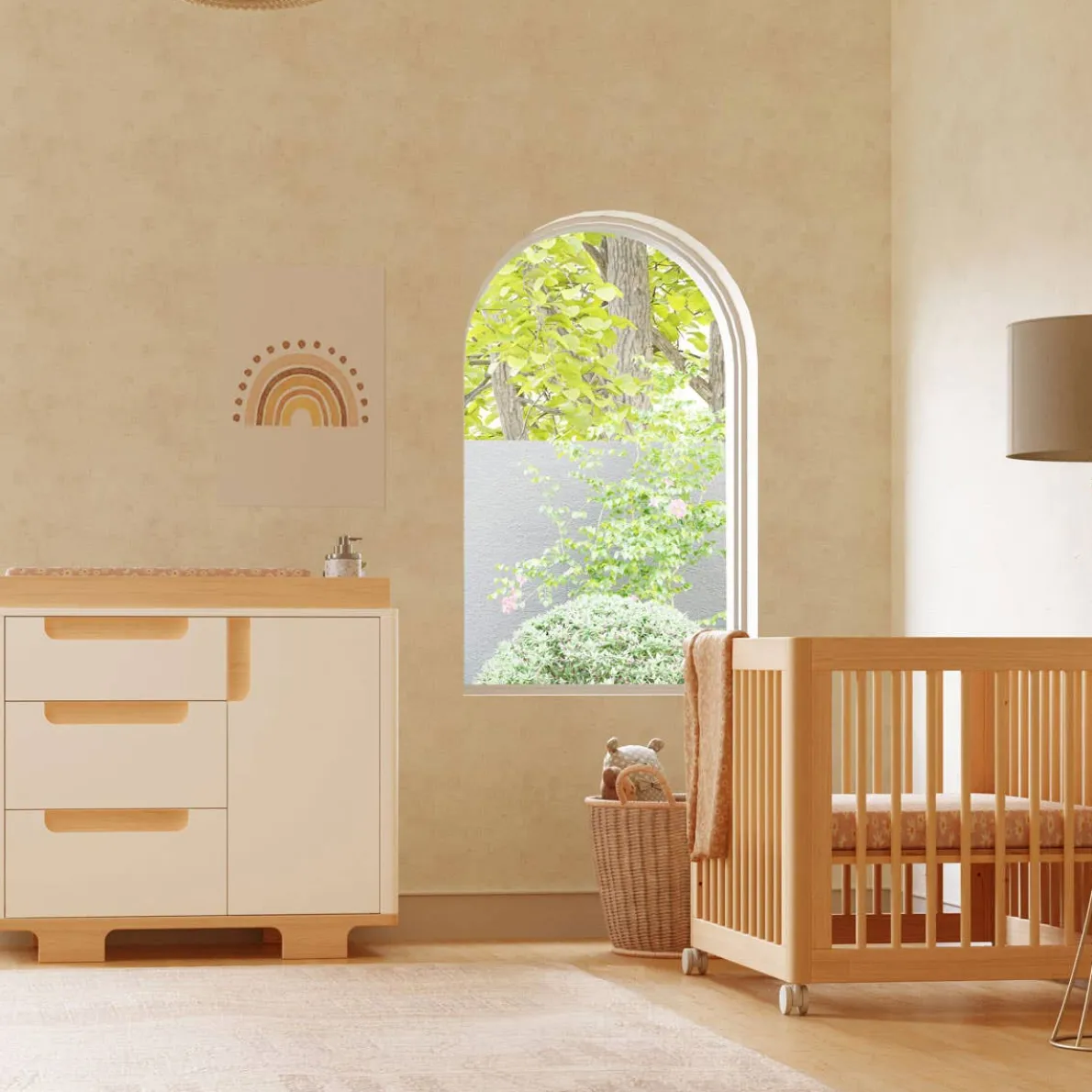 Designed to complement the Yuzu 8-in-1 All-Stages Crib, the Yuzu 3-Drawer Changer Dresser marries form and function with playful arched feet, gently curved corners, included changing tray, and plenty of storage with 3 drawers and 1 spacious cabinet. Whether you’re going for a classic, modern, or eclectic look, this versatile dresser is a perfect statement piece in the nursery.