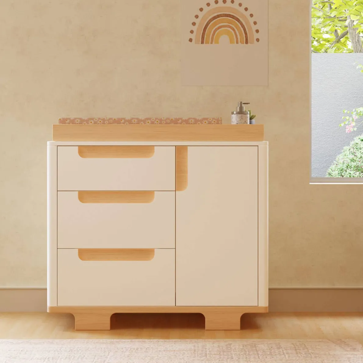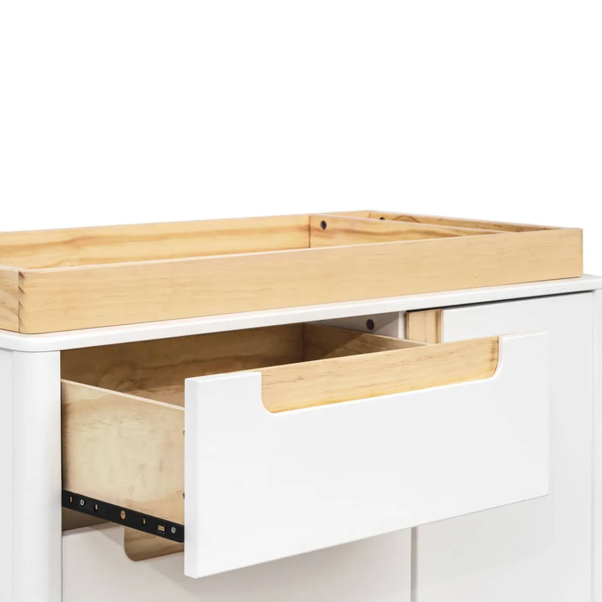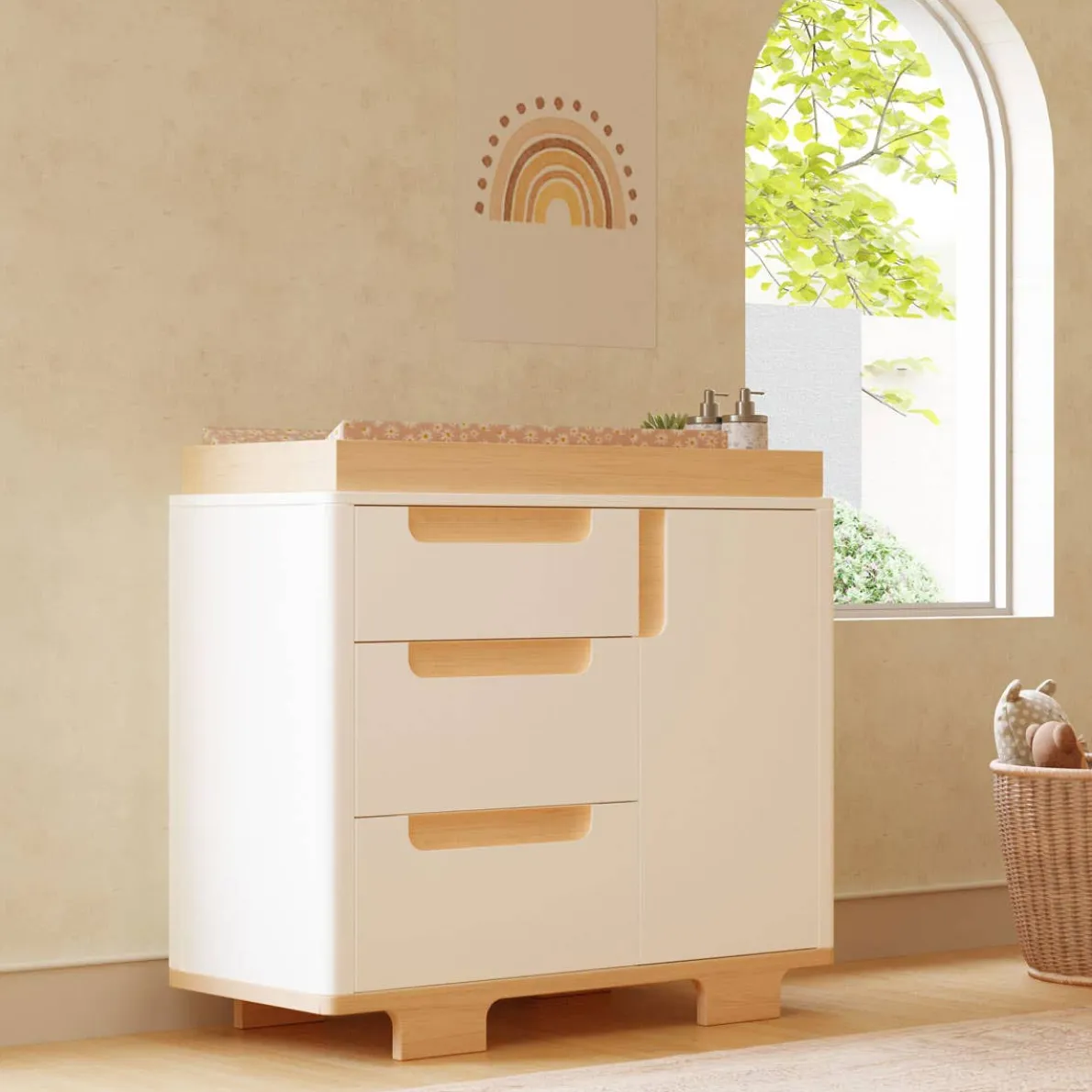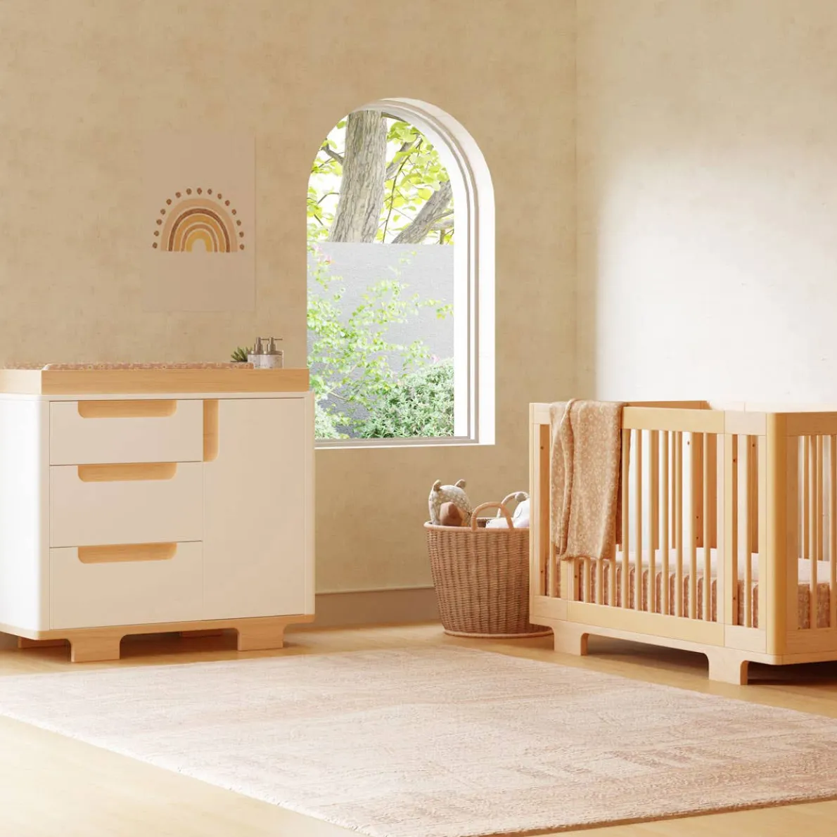Designed to complement the Yuzu 8-in-1 All-Stages Crib, the Yuzu 3-Drawer Changer Dresser marries form and function with playful arched feet, gently curved corners, included changing tray, and plenty of storage with 3 drawers and 1 spacious cabinet. Whether you’re going for a classic, modern, or eclectic look, this versatile dresser is a perfect statement piece in the nursery.