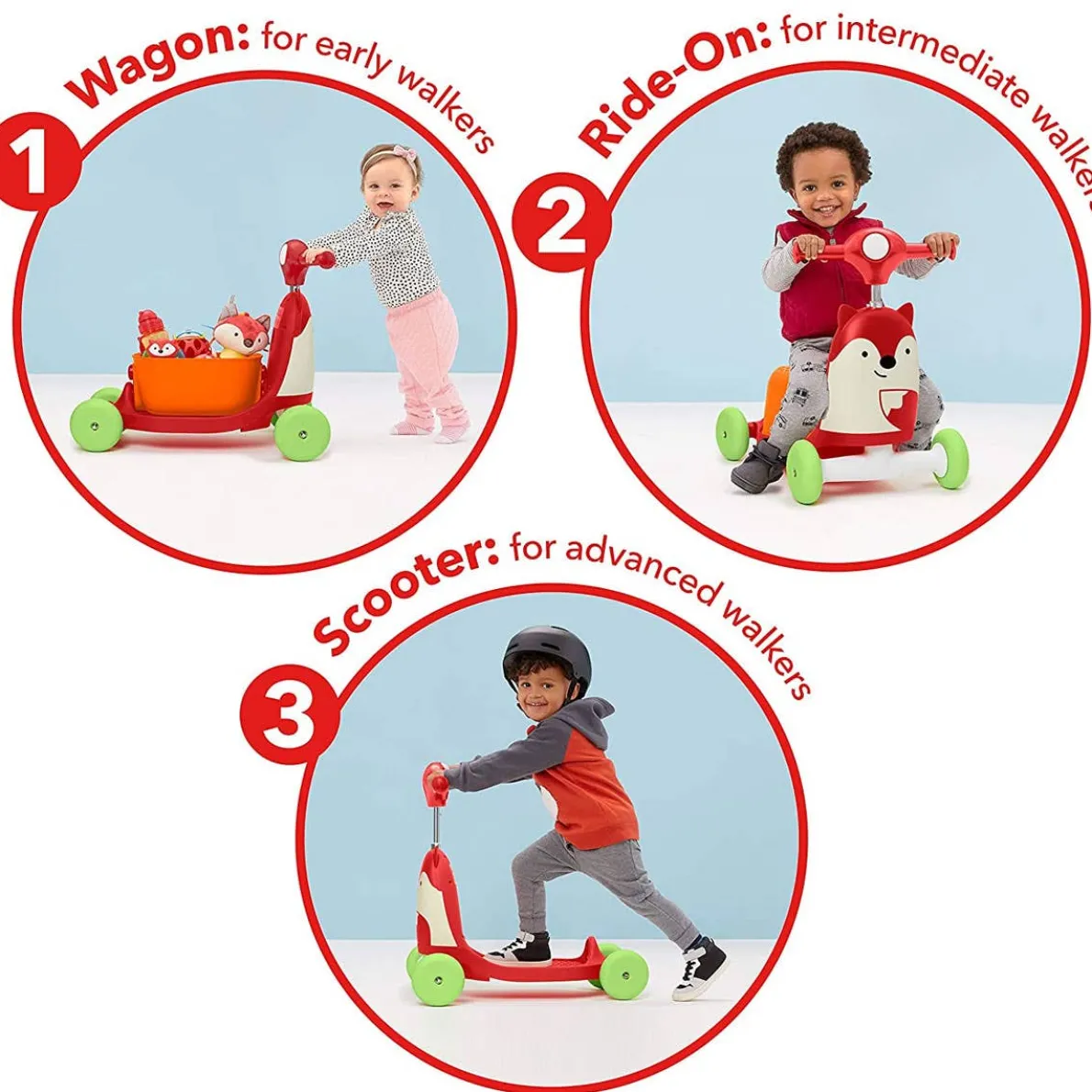 - Stage 3: As toddlers grow, easily converts from a ride-on to a scooter
