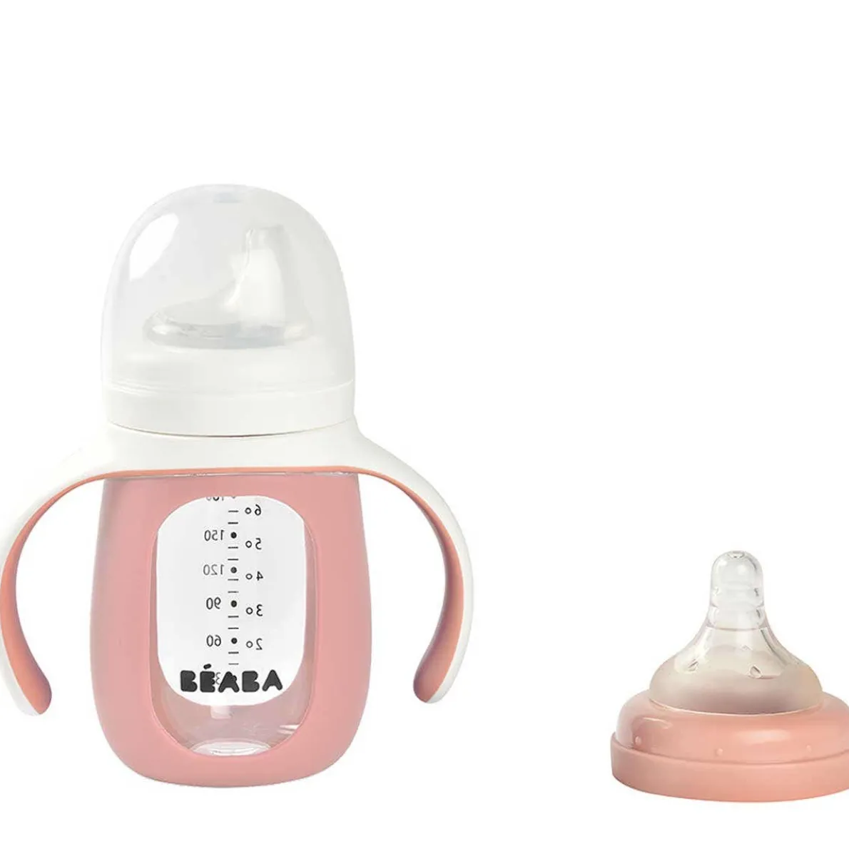 - 2-in-1 bottle teat and silicone spout with two rings to easily interchange