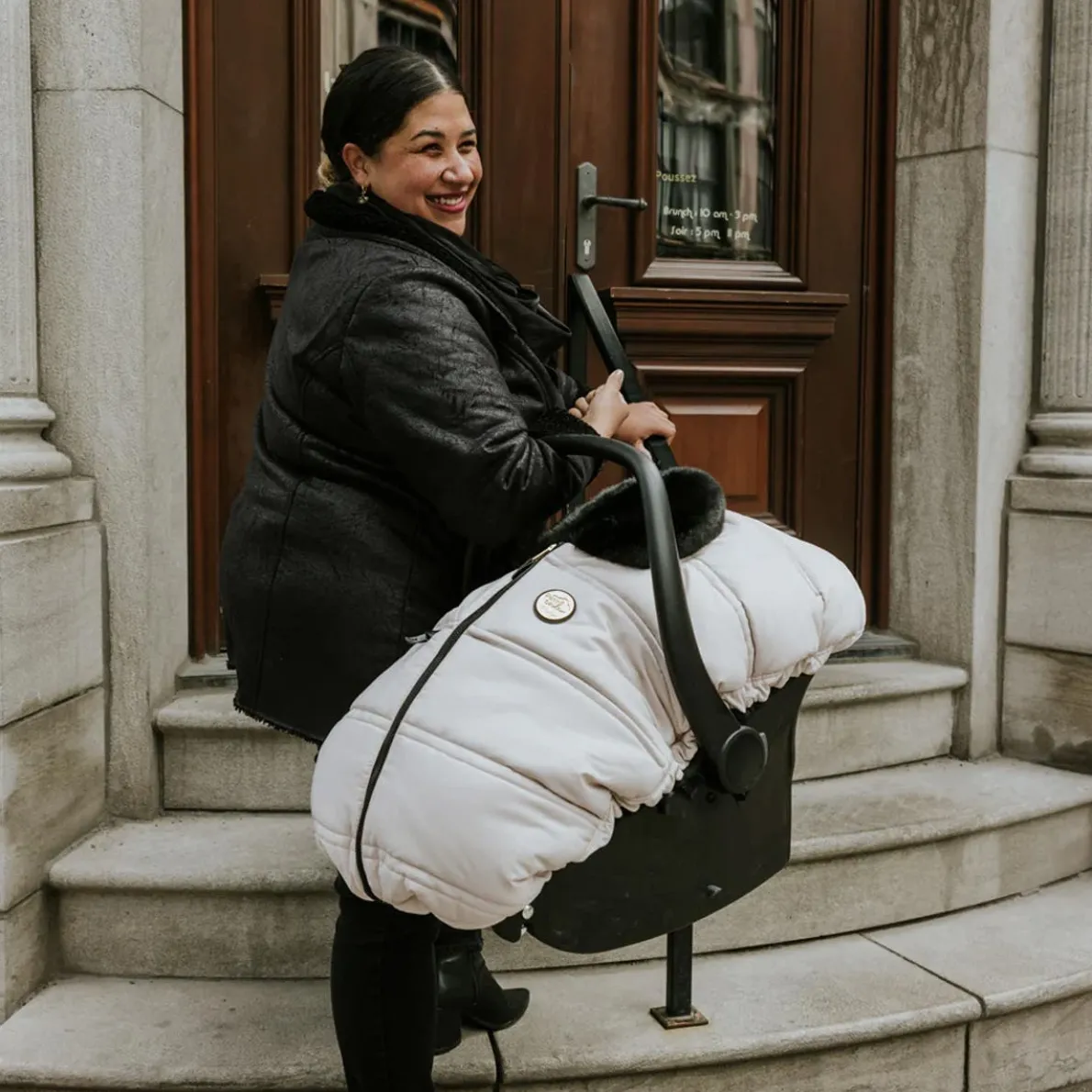 Add a touch of style to your walks with your baby with Petit Coulou luxury Prestige set. Featuring a soft vegan fur interior and a cozy insulated backing, it offers your baby luxurious comfort and exceptional protection. This three seasons car seat cover won’t shift or slip when you’re out and about in windy conditions. Thanks to its lightweight, water-repellent material and igloo effect, your baby will be protected from the elements and unwanted touches. The only cover on the market to offer structural support to prevent sagging.