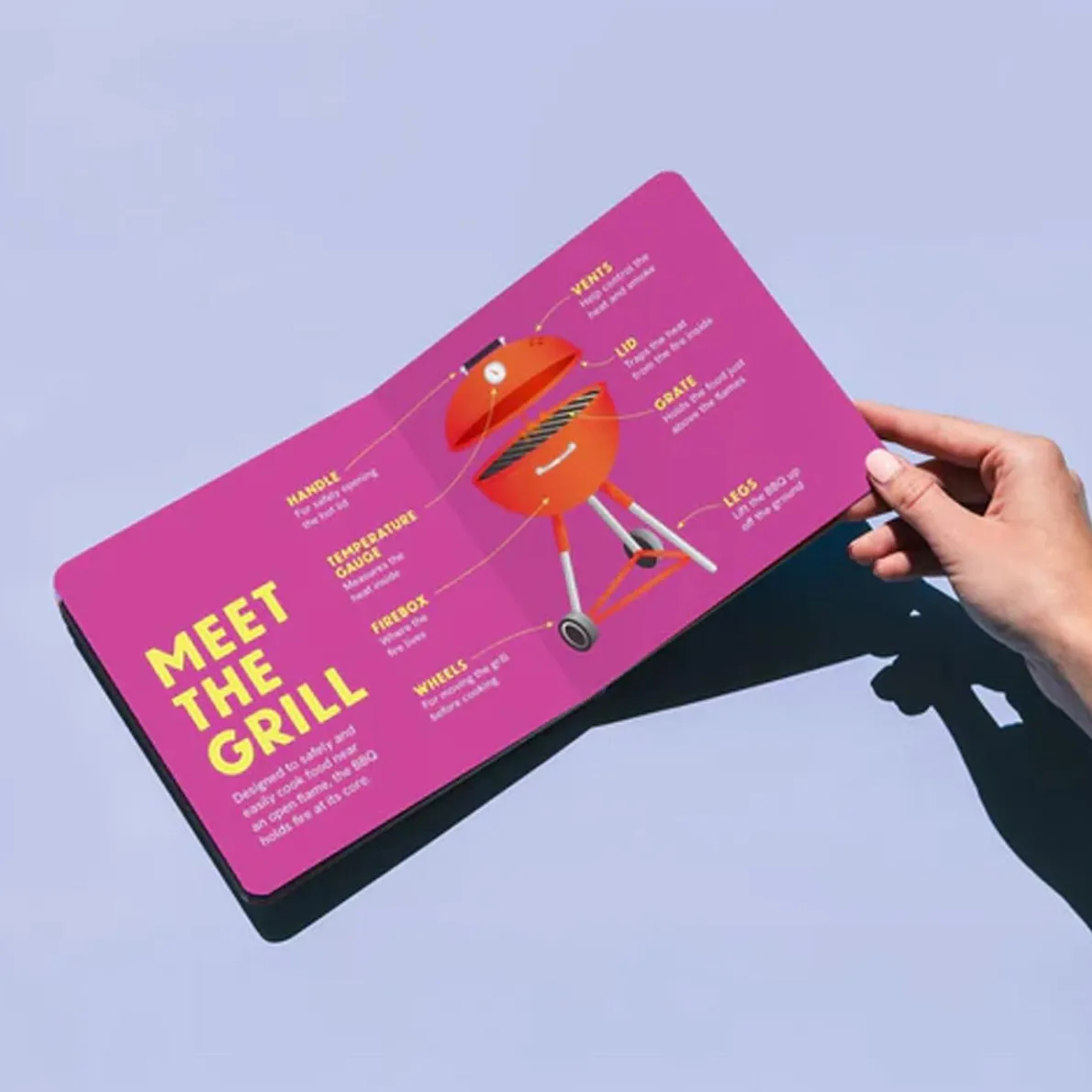 Ignite imagination and a love for food with A Tiny Guide to BBQ – a true feast for the eyes and mind! This delightful kids board book features vibrant, captivating illustrations of everything that makes a barbecue special, from the sizzling grill to the delicious burgers and hot dogs. It takes little cooks through all the grilling basics and is designed to enchant even the youngest budding grillmaster. This charming board book journeys through the world of outdoor cooking, from the inner workings of the BBQ grill to the yummy food that comes off it, highlighting key tools and grilling accessories. Learn about grill parts, essential tools of the trade, simple cooking techniques, and adding delicious flavors with seasoning or sauce. Perfect for your little foodie and a fantastic addition to your childrens books collection, it’s more than just a baby book; it’s an invitation to a world of smoky aromas, tasty meat, and summer joy!