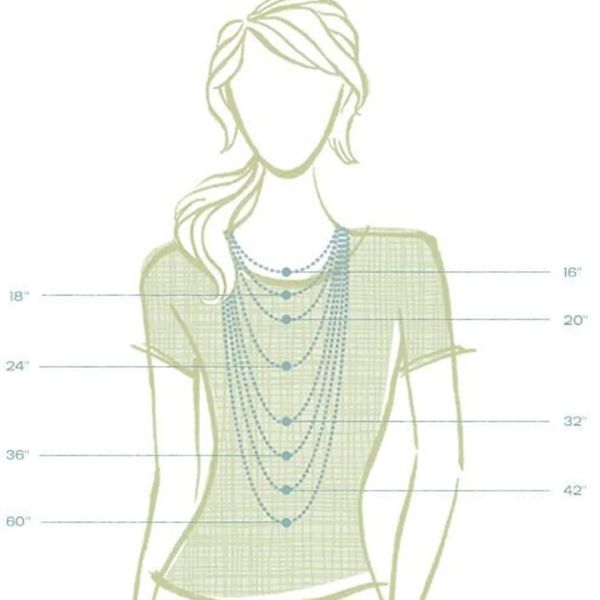 - Standard necklace length is around 32 inches.