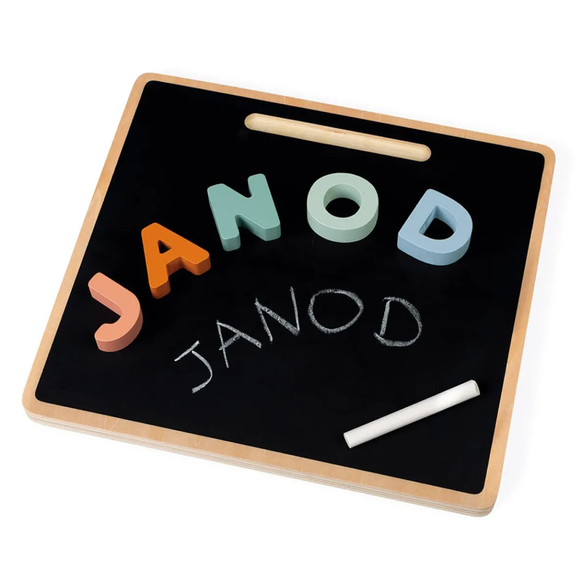 This wooden awakening toy will allow your child to learn the alphabet with several levels of play. He will be able to place the letters on the corresponding colors, recognize the letters then write them thanks to the slate on the back and the chalk provided. This wooden toy is part of the Sweet Cocoon collection, a delicate colors range, inspired by current trends to gently accompany your child’s first learnings!