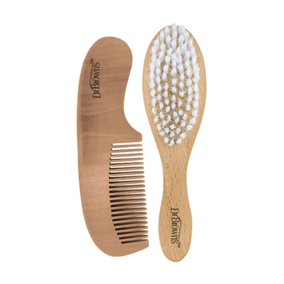 Dr. Brown’s™ Soft and Safe Baby Brush and Comb are designed for all stages of baby’s hair growth. Soft, soothing bristles are gentle on baby’s head but sturdy enough to brush all hair types – whether fine, thick, curly or straight.