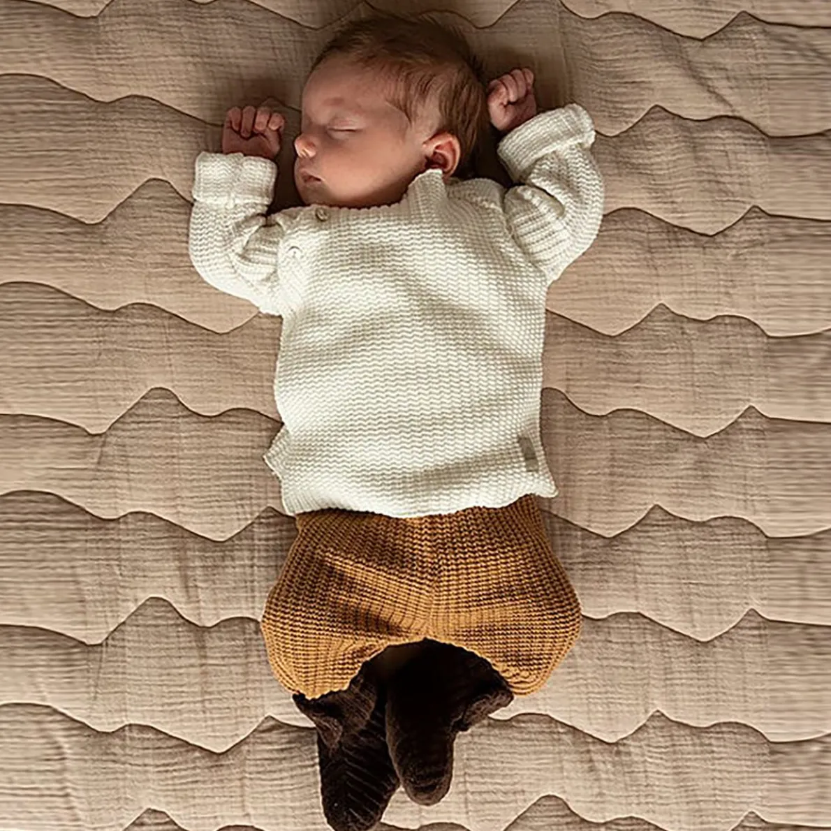 This beautiful knitted top from Nanami is made of 90% cotton and 10% polyester. The front of the top features buttons, making it easy to put on and take off. The edges are finished with a lovely babylock stitch.