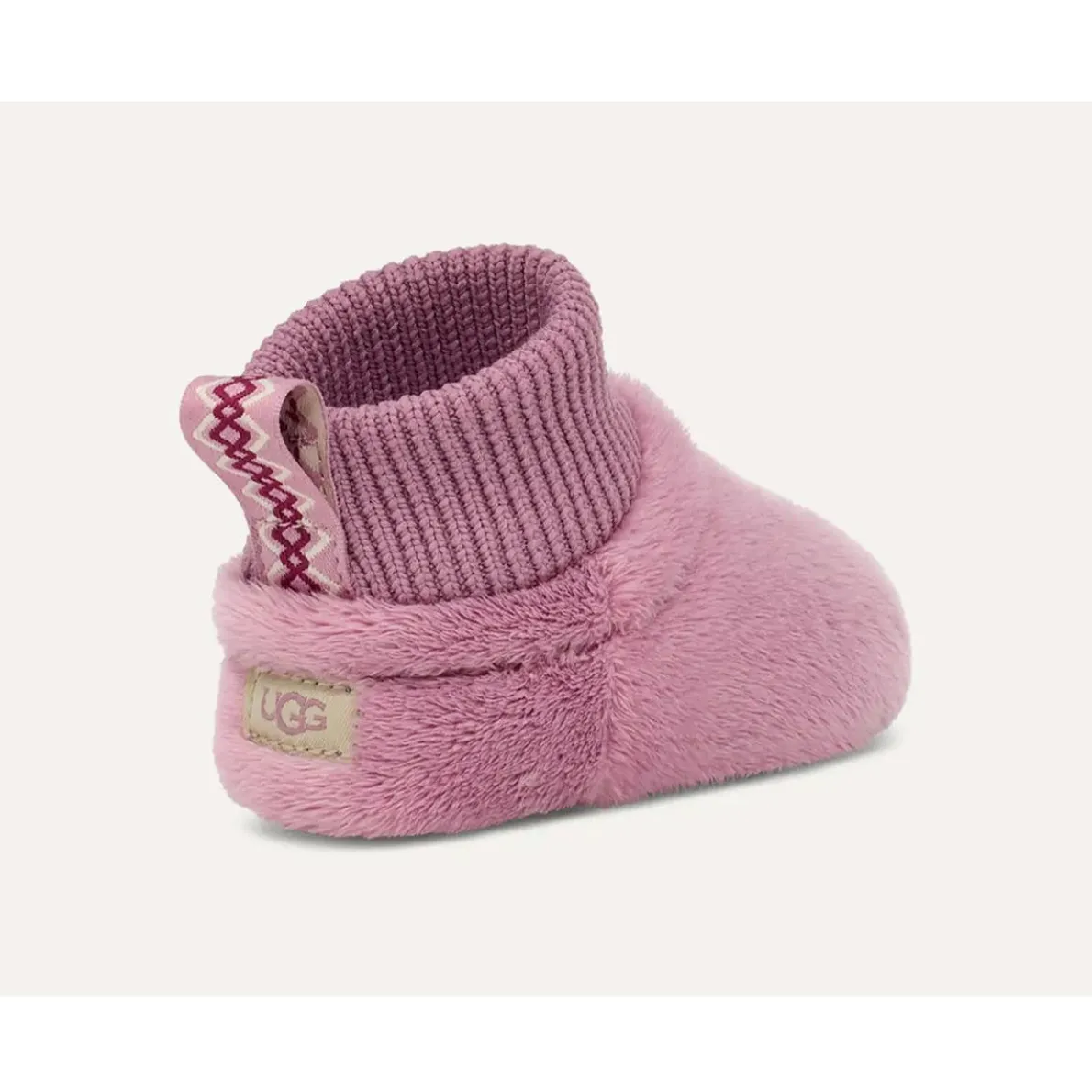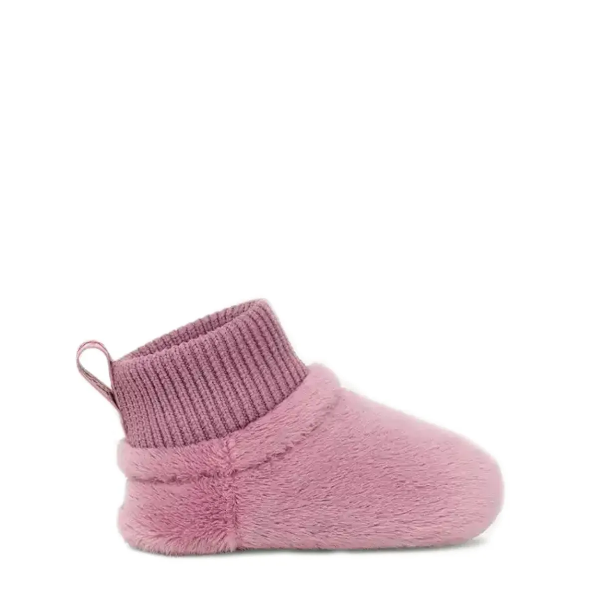 Not only is this pre-walker boot so cute, but it’s easy to put on and take off. Featuring a cozy fleece, a stretch cuff upper, and a rear pull tab with our signature UGGbraid, it’s all in the details with the Baby Nesti. Plus, it has a slip-resistant rubber print on the outsole for extra ease.