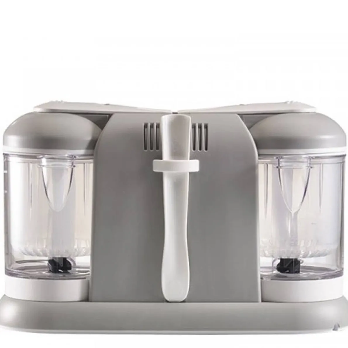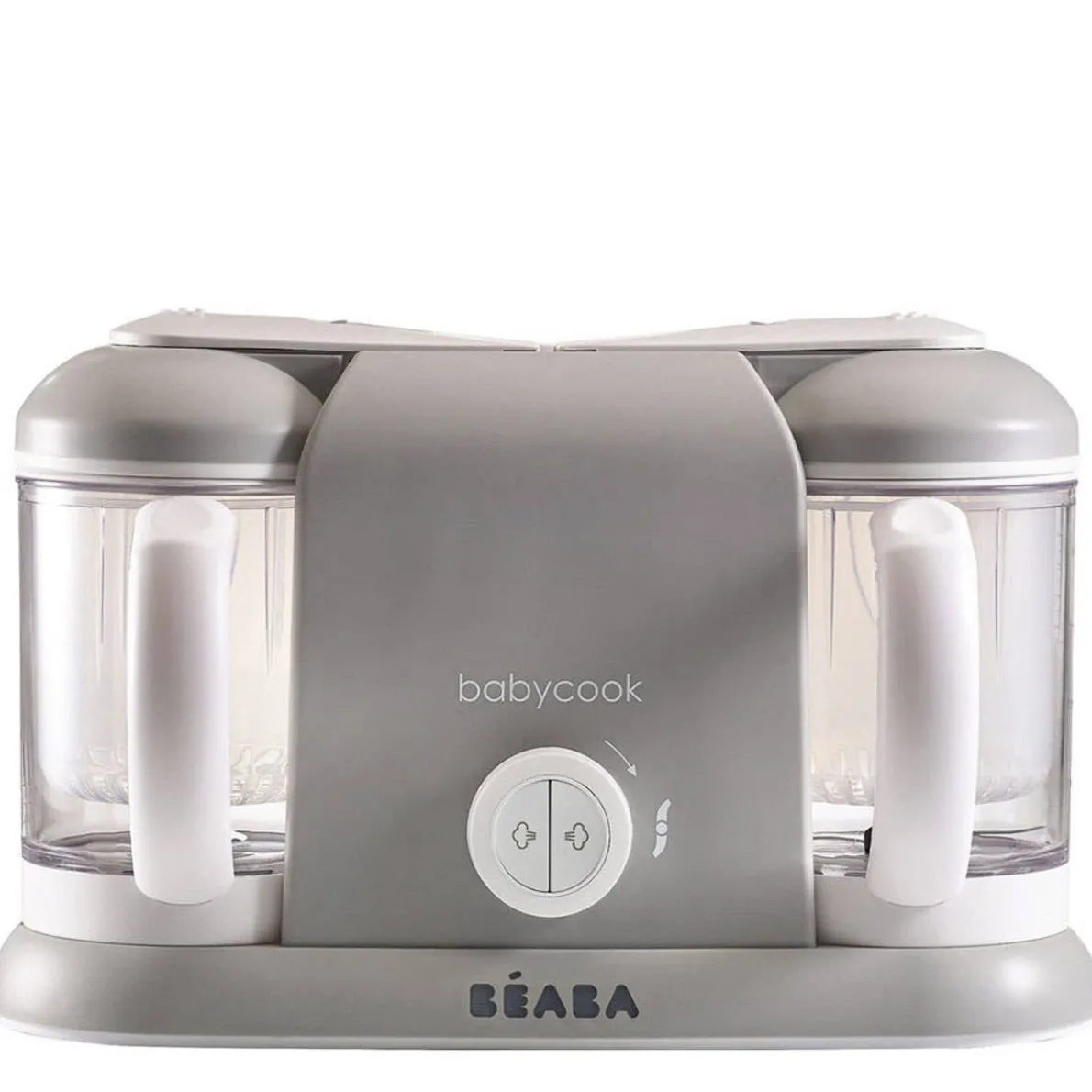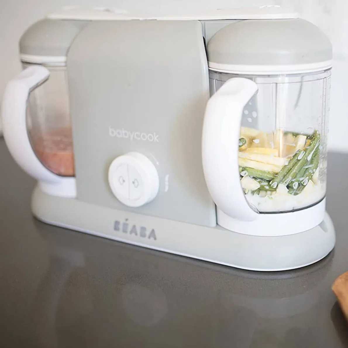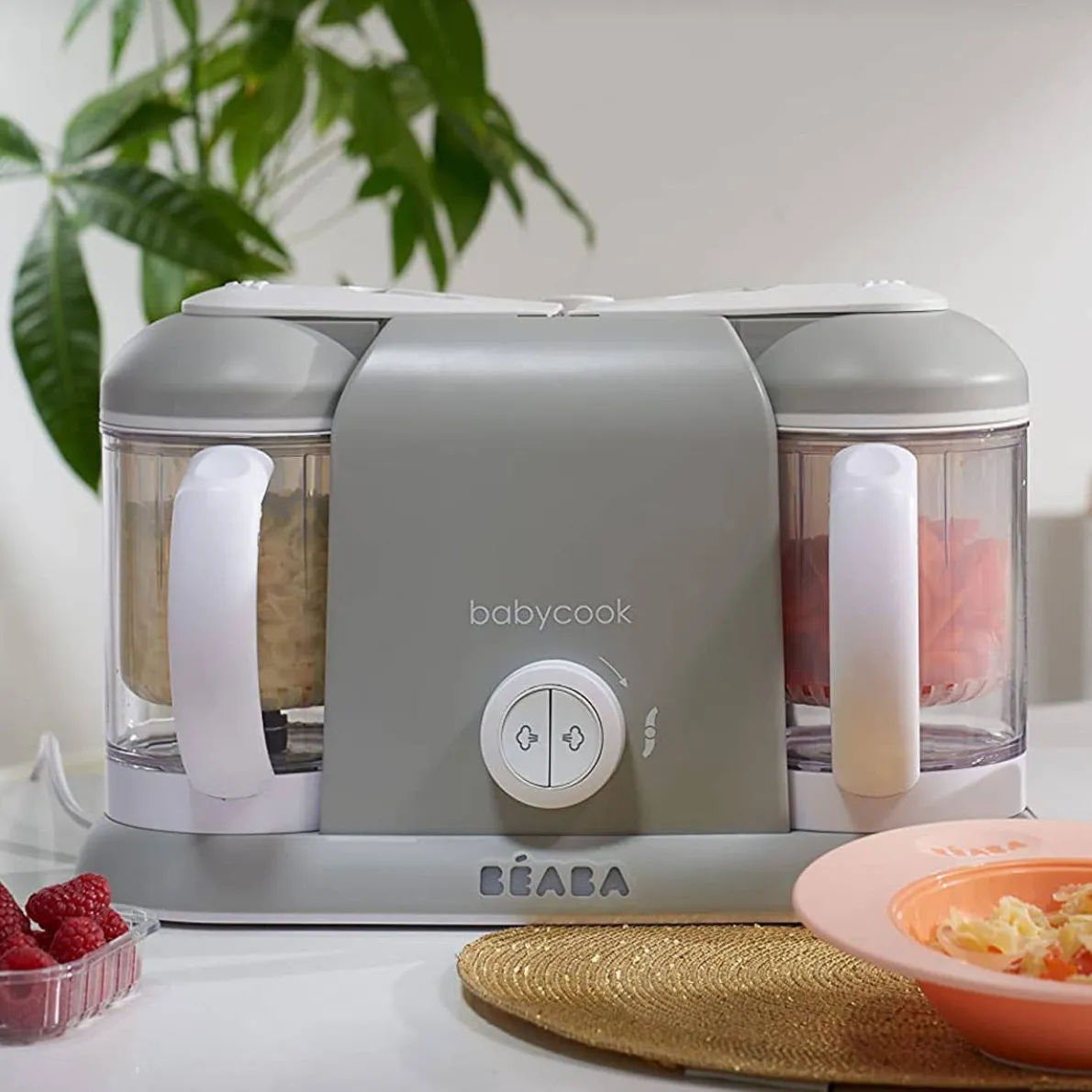 BEABA Babycook® Duo Baby Food Maker is a homemade baby food machine that helps parents make fresh, nutritious purees for baby with natural ingredients they can pick and control. With easy one-handed operation and two large capacity cooking bowls, the BEABA Babycook® Duo functions exactly like the Babycook Solo, just with double the cooking capacity. This means you can make more food for baby in one-go! Choose to batch-cook for the week, steam two dishes at once or make sweet and savory purees simultaneously. No matter which route you choose, you can prepare twice as many delicious and nutritious meals for baby in 15 mins or less. Babycook® Duo makes over 9 cups of food at one time. Refrigerate or freeze leftovers in our Multiportions, then simply defrost and reheat right in the same machine. Steam cooking locks in vitamins and nutrients, a multi-purpose mixing blade provides just the right texture, the timer has an audible alert to tell you when meals are ready, and all of this with total one-handed operation.