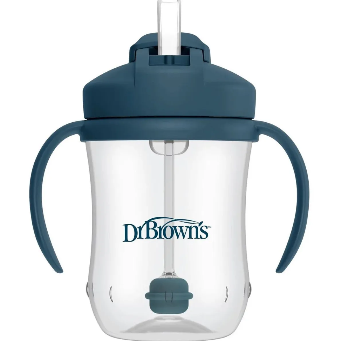 Designed with a soft, weighted straw, baby can drink from any angle – helping them transition from tipping the cup upside-down to sipping upright with no spills in between. Baby’s First Straw Cup features handles that lock in place to make it easy for little hands to hold. The cup is contoured, and the handles removable, so it grows with baby as their cup holding skills improve. All parts removable for easy cleaning and preventing dirt build-up.