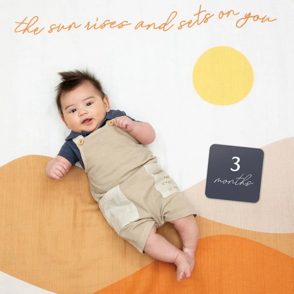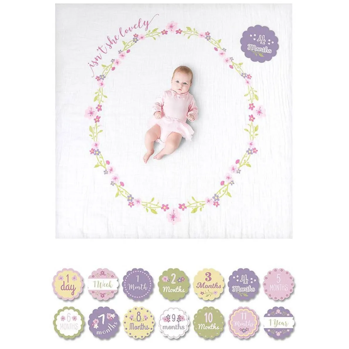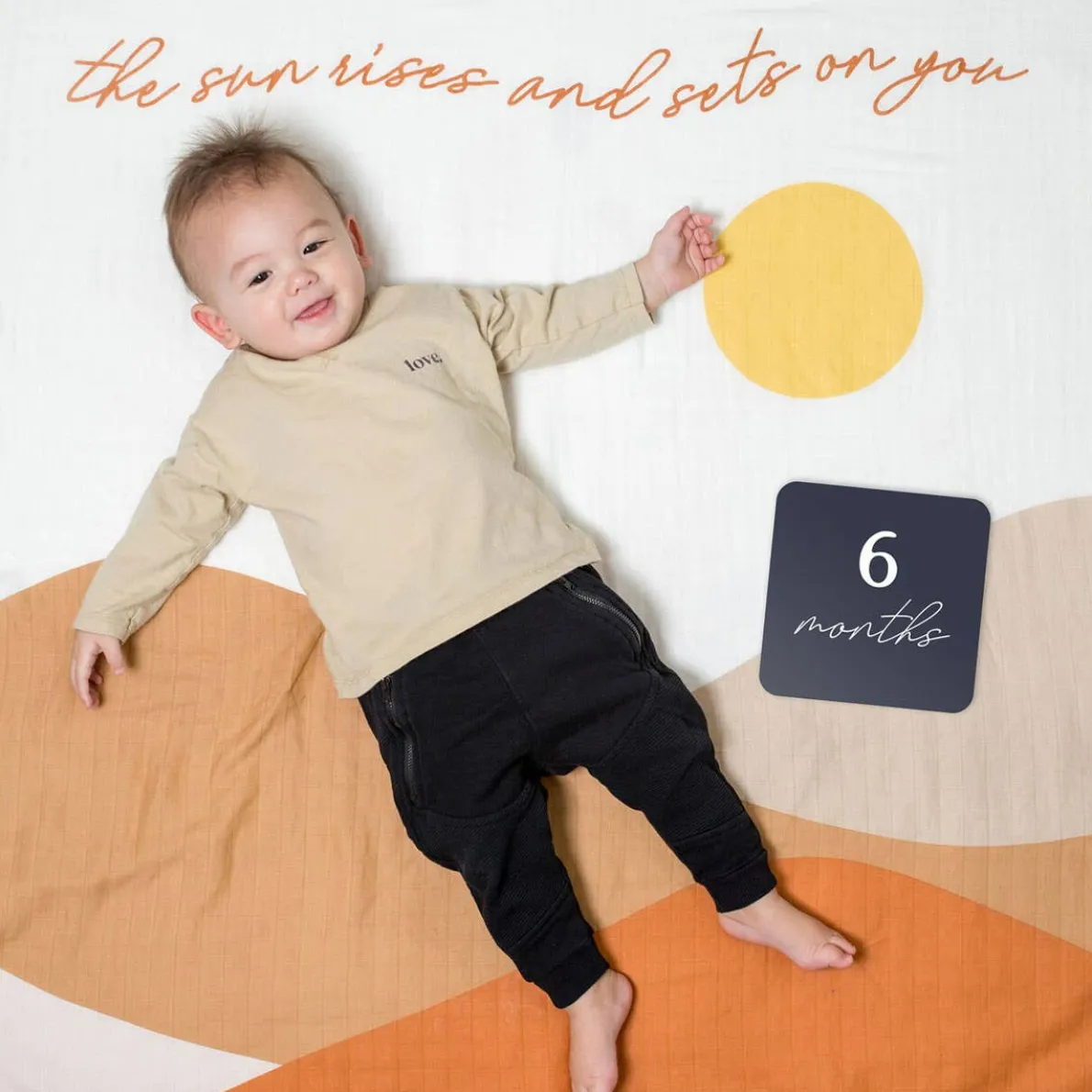 Turn milestones into memories with this large super soft premium quality photo blanket and milestone cards set. Perfect for the modern day social mom, this ready-to-use coordinating backdrop with milestone cards easily captures baby’s first months. Perfect baby shower gift and makes for adorable social media posts!