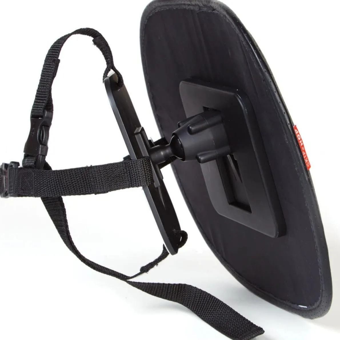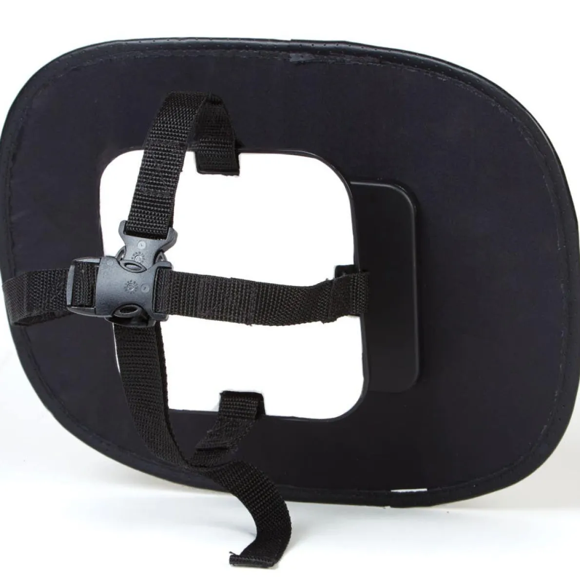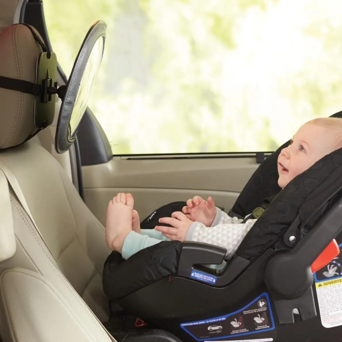 This smart-looking baby car mirror proves a wide angle view of little one. The fashionable faux leather trim coordinates with any car interior.