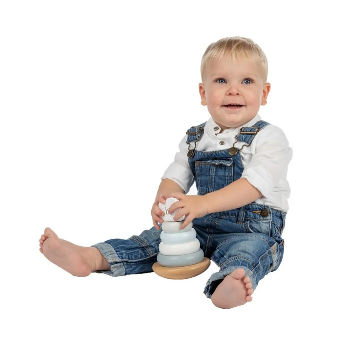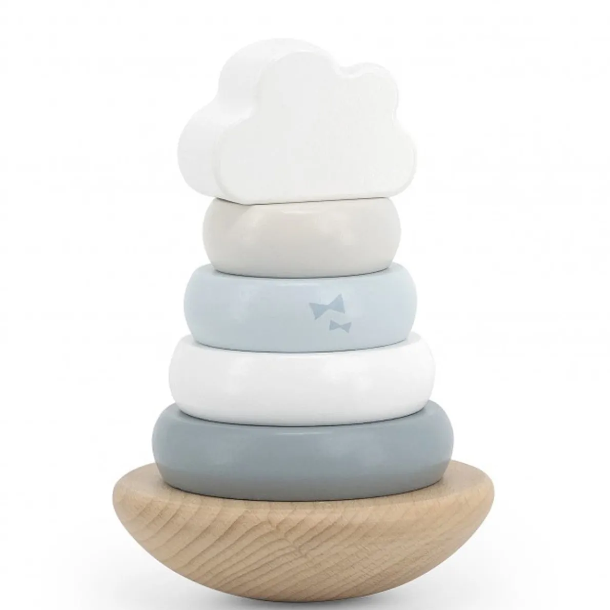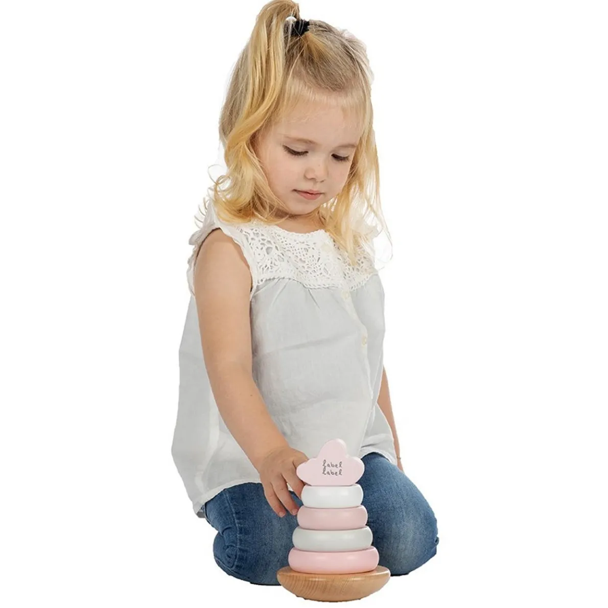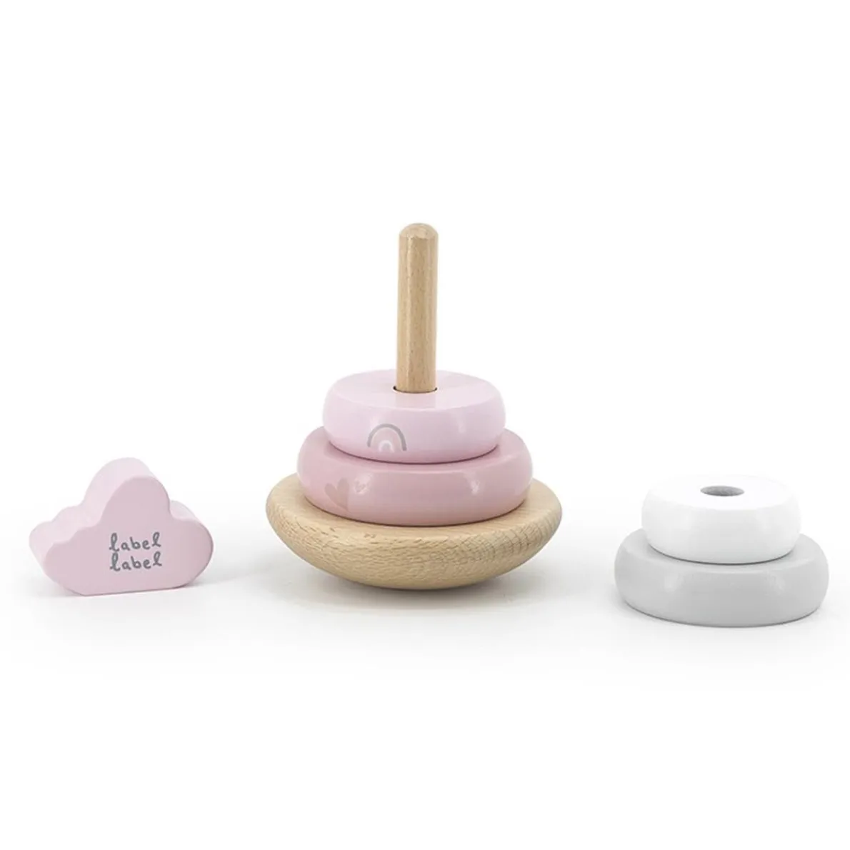- The balancing pyramid is made of high-quality FSC certified beech wood and was painted in beautiful soft blue, white and grey tones using child-friendly water based paint. The pink stacking rings and top block have a lovely symbol.