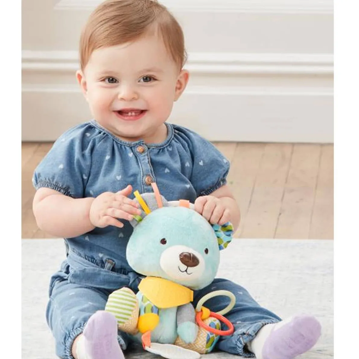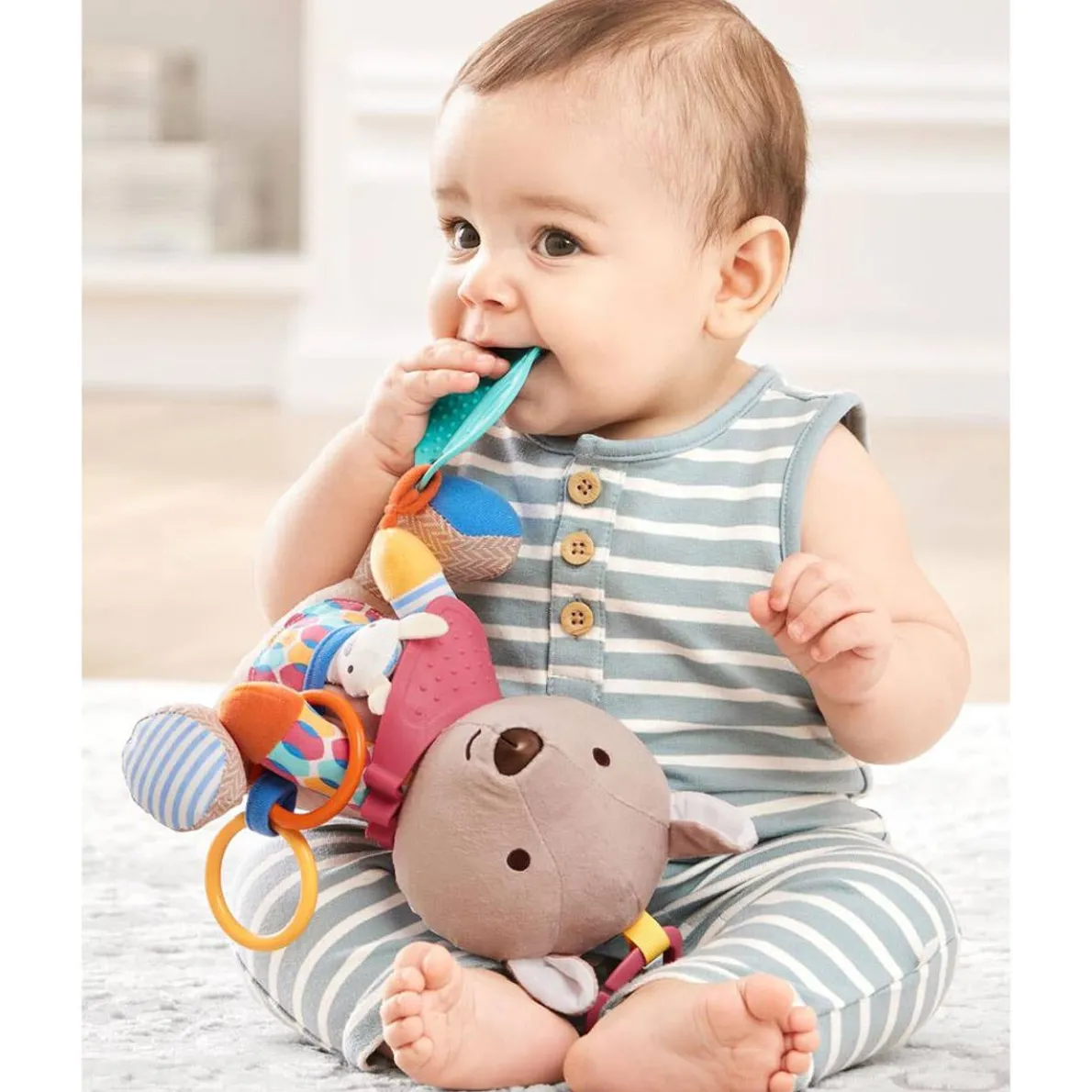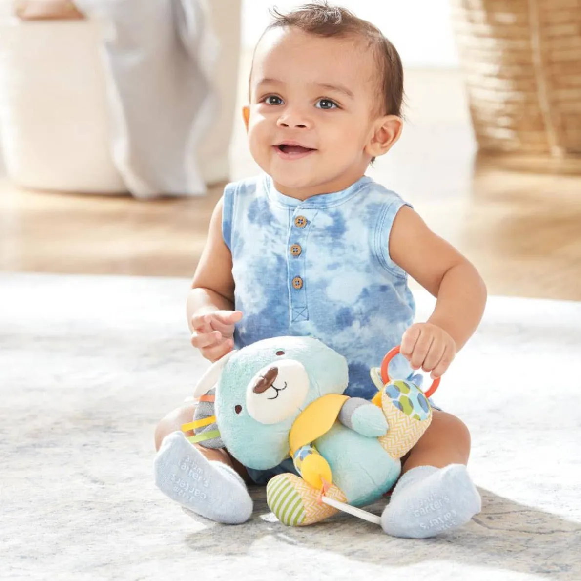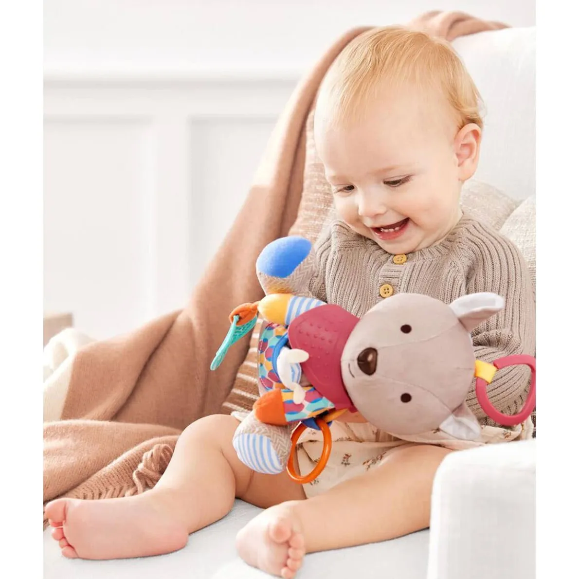 Full of textures, patterns and sounds, little hands stay active as baby explores rattles, crinkles and more. This colorful character’s soft bandana teether detaches for mom to wear around her wrist for quick access. Perfect for multi-sensory play, this cute companion is ideal for fun at home or-on-the-go.