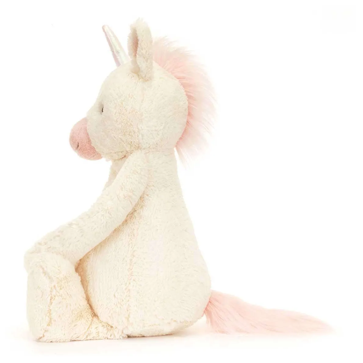 Sugar-sweet in pink and white, Bashful Unicorn is such a delight. Full of magic and moonlight, she loves the forest, so be sure to take her on any picnic. So very cuddly, with squish-squashy hooves, even her horn is shimmery-soft. Sprinkle bedtime with stardust and let imaginations gallop!