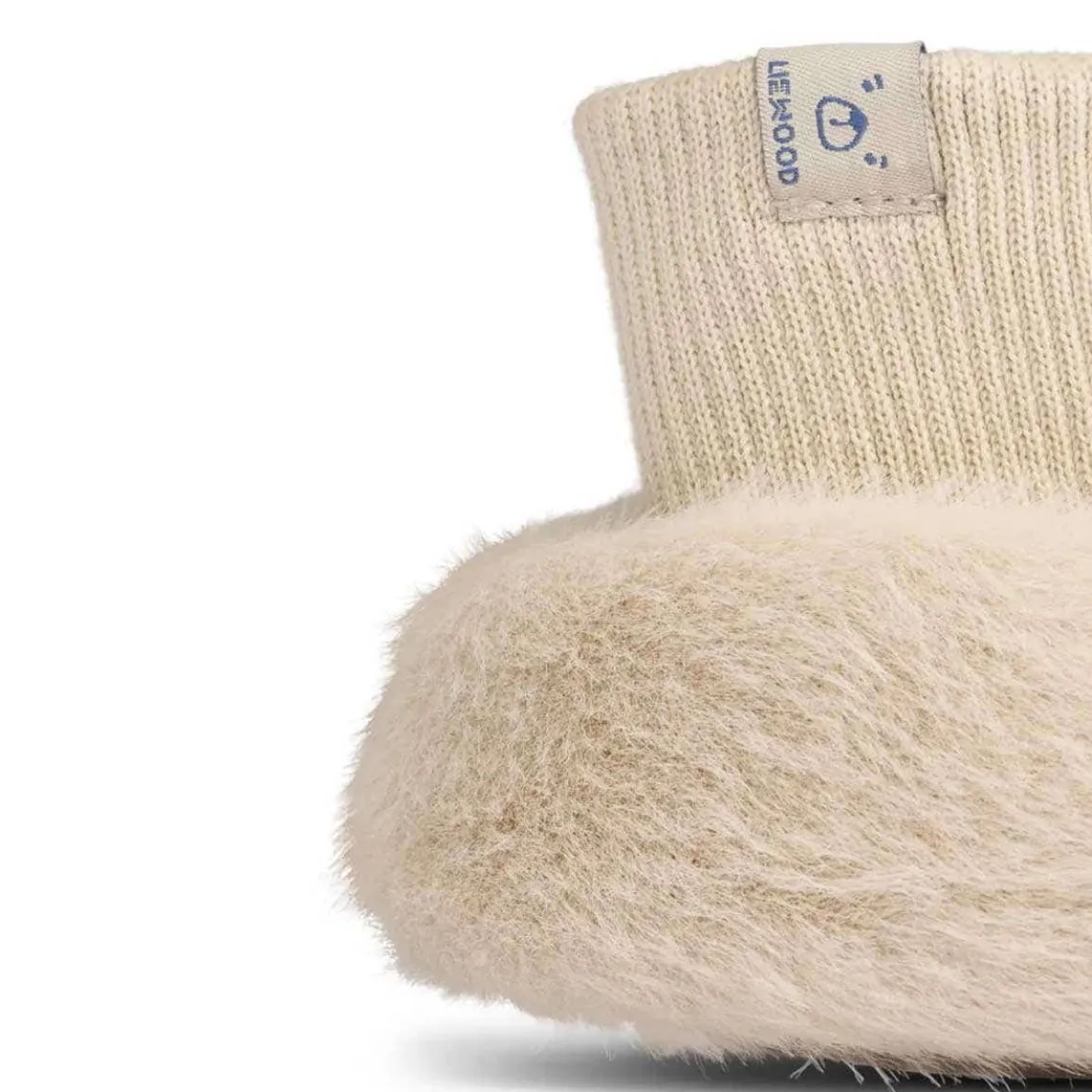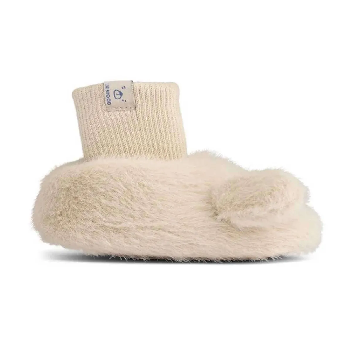 The BETH baby plush slippers with cute animal details feature a foldable rib cuff to keep them in place and anti-slip dots on the soles, making them perfect for keeping little feet warm and cosy on cold days.