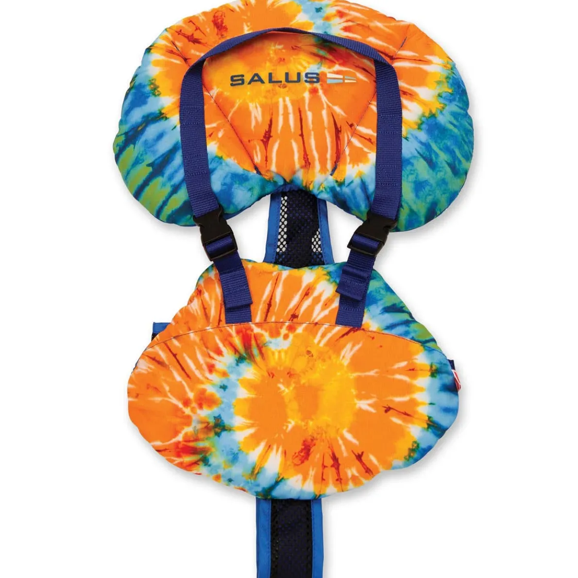 As parents, we put safety first. In designing the Salus Bijoux, we stepped outside the confines of existing standards to offer unprecedented security, safety and comfort for babies 9 – 25 lbs. The front design ensures that baby turns face-up from a face-forward position. The collar cradles the head when lifted by the strap or while floating. Mesh harness and short front enhance comfort sitting upright, lying down, or in a baby carrier.