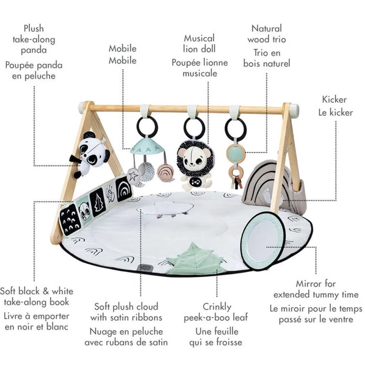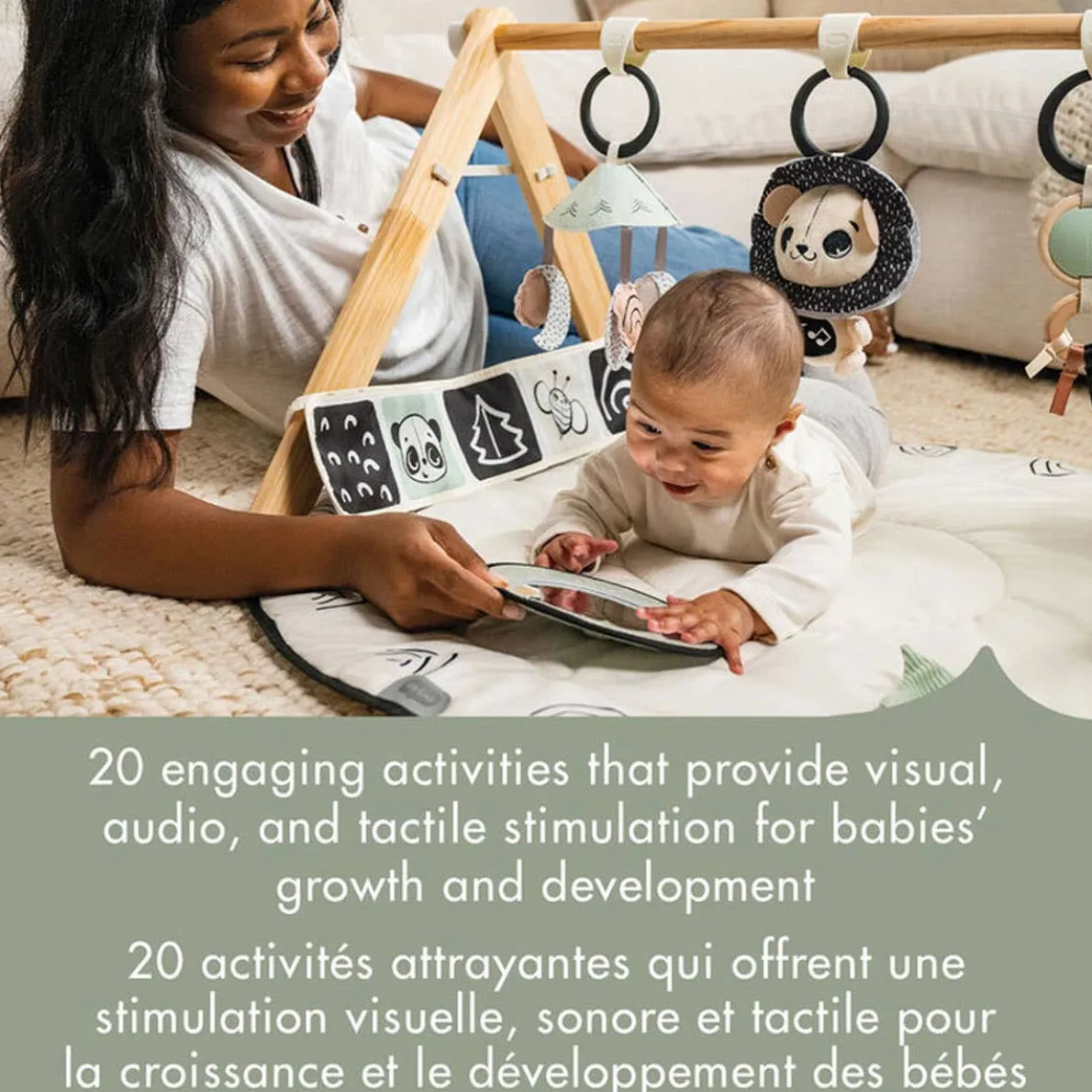 Uniquely designed with a stand-alone, natural wooden arch, this contrasting and elegant design activity mat will entertain your baby from the newborn months through the sitting stage, while adding a trendy décor accent to your home. Babies will be delighted by the 20 engaging activities, as they meet essential milestones through play and exploration. The Gymini® also comes with 12 milestone cards with helpful development tips, fun playtime ideas, and ways to capture and share precious moments throughout the first exciting year.