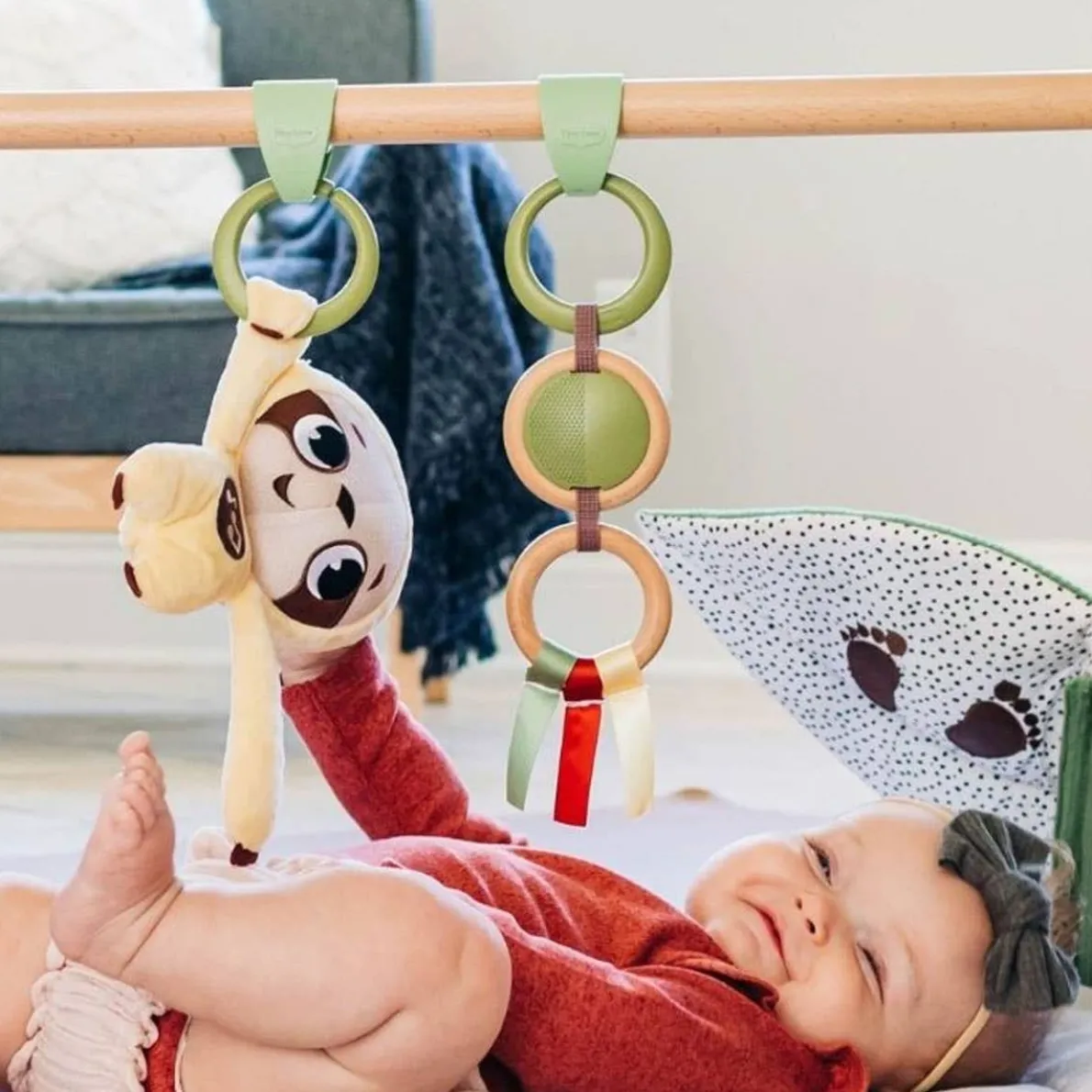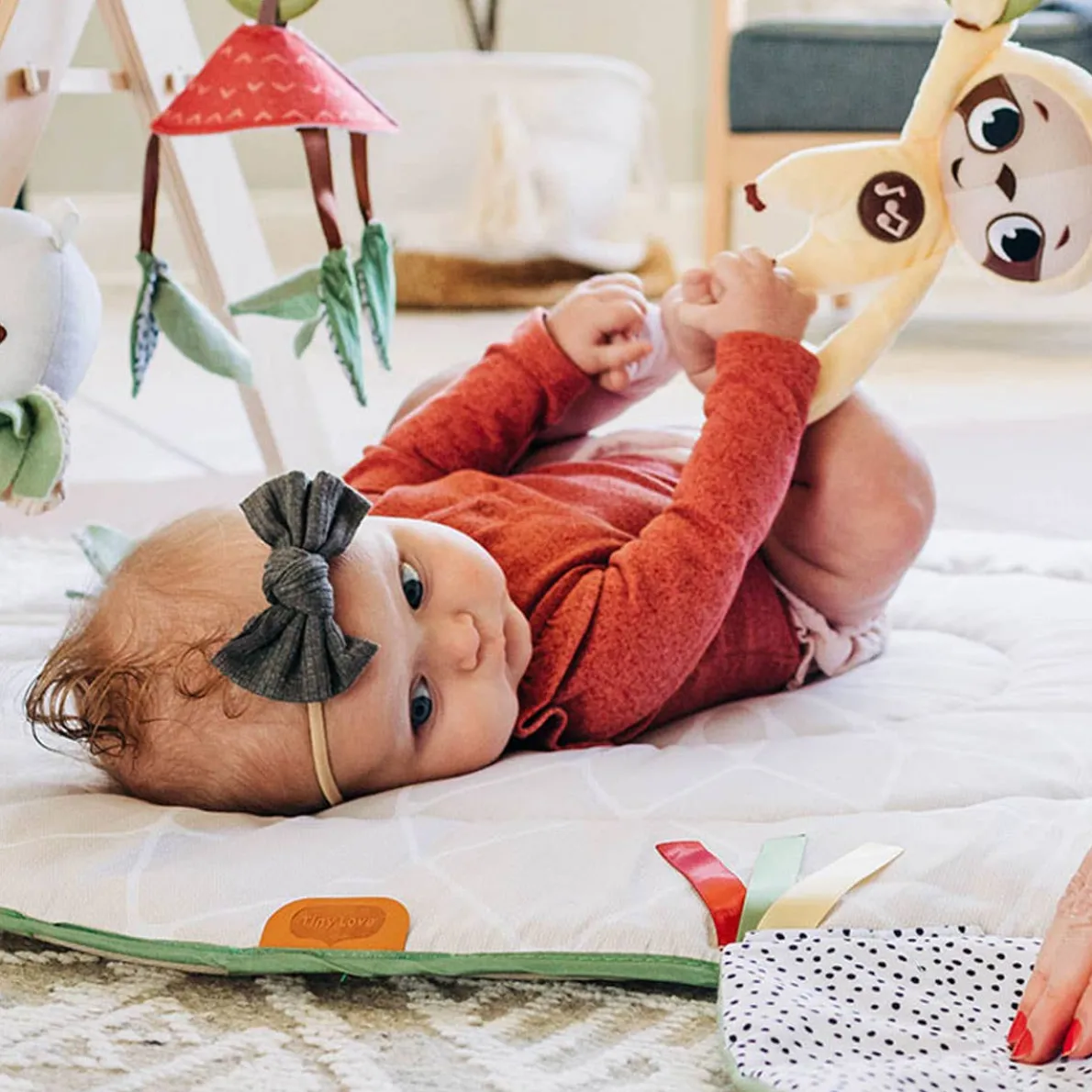 Supporting all developmental skills, this playful and fashionable baby gym includes 20 creative activities. The double-padded soft activity mat is made of premium fabrics and combined with a natural wooden play arch fitted with a selection of adorable hanging toys. The Boho Chic Collection’s trendy design and unique color palette will complement your home’s interior and create a peaceful, well-moderated environment that will support exploration. The gymini comes with a set of month-by-month milestone cards, which offers a wonderful way of creating adorable keepsakes that celebrate your baby’s growth. Simply flip the card to discover a useful tip that will help you learn more about your baby’s development at that stage.