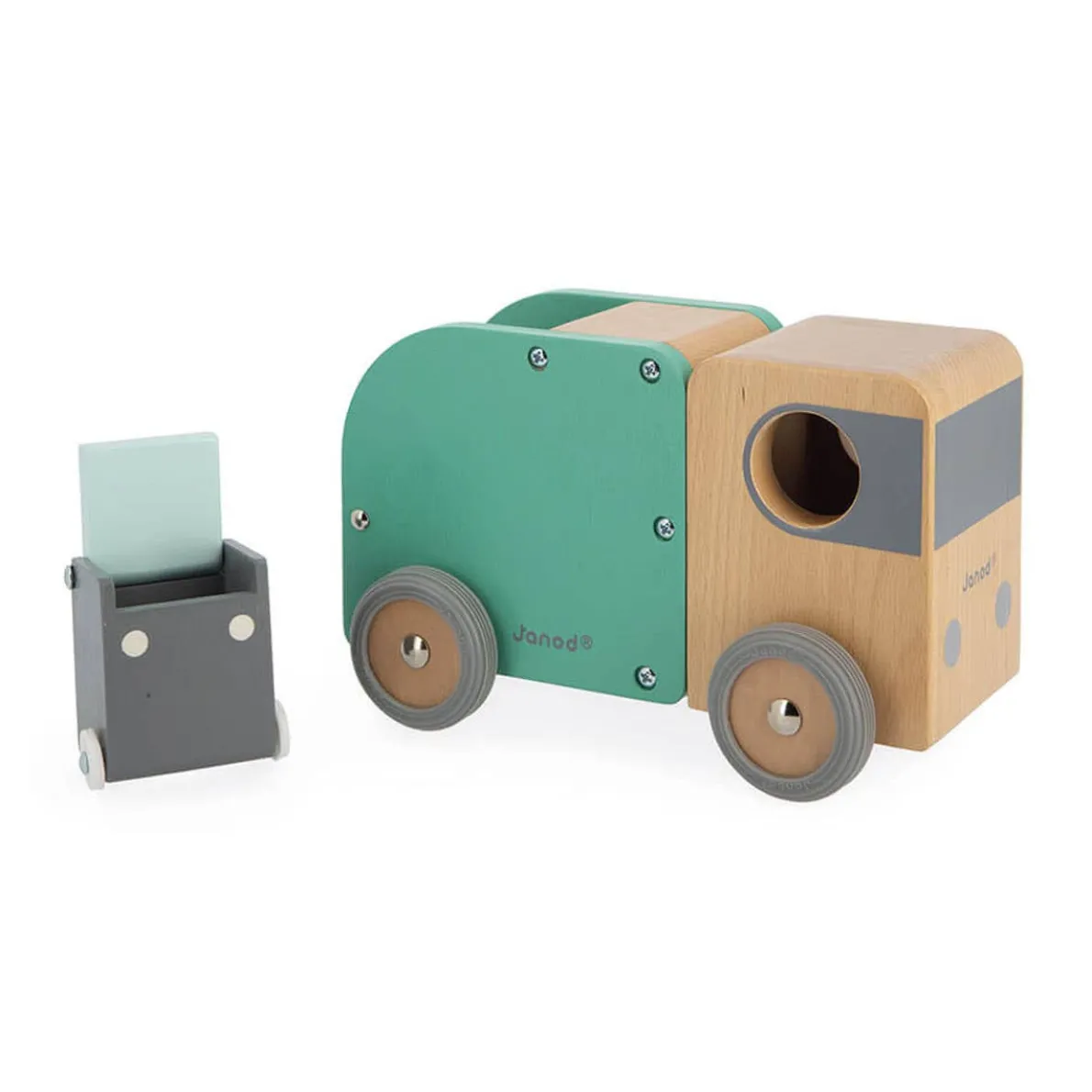 It’s bin collection day, did you remember to put yours out? This beautiful solid wood refuse truck will help educate your child about ecology and recycling. For more realism, this green, grey and wood truck comes with a magnetic dustbin that tilts to be emptied at the back of the truck! Your little ones, from 2 years old, will be able to invent their own stories while developing their fine motor skills. Its dimensions of 21.8cm long and 11.8cm high and its silent rubber wheels make it a toy suitable for small hands. This toy is made of FSC®-certified wood and painted with water-based paint.