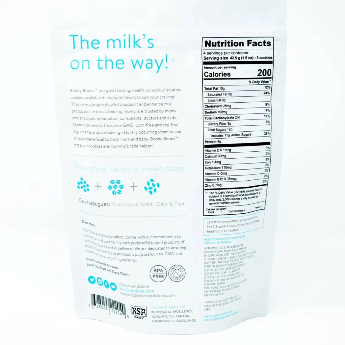 Booby Boons Lactation Cookies®, by Stork and Dove™, are convenient, delicious and health conscious. Stork and Dove are makers of functional products for pre- and post-natal women. Moms love that Stork and Dove are committed to making functional products of the highest quality. If you are craving a convenient and functional treat loaded with goodness for you and baby – look no further.