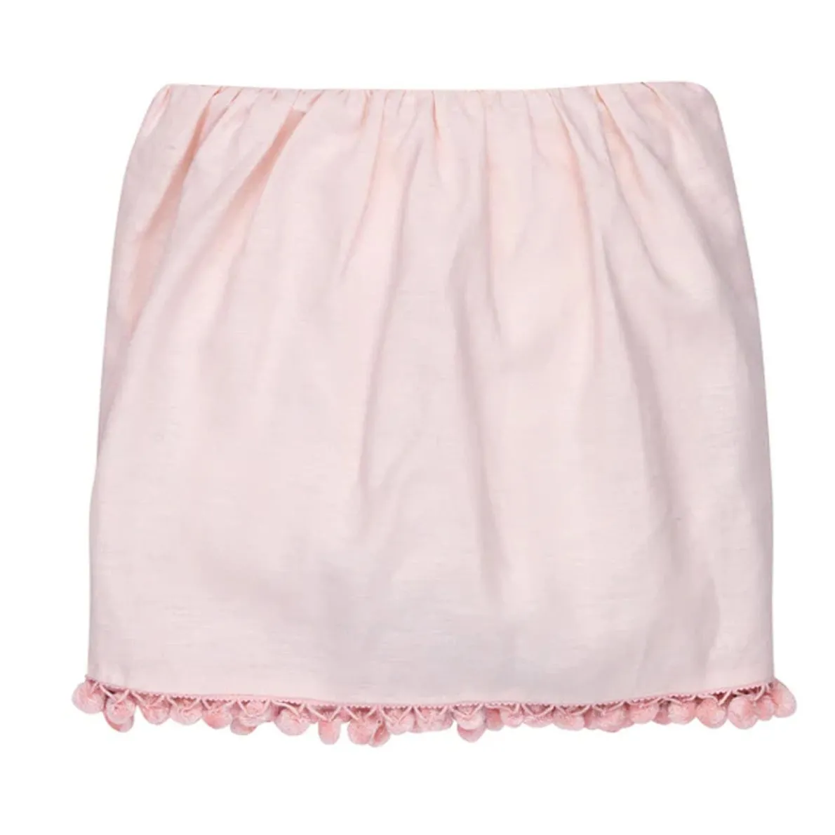 - Stunning shirred 16-inch-long crib skirt with pom-pom trim create a designer look