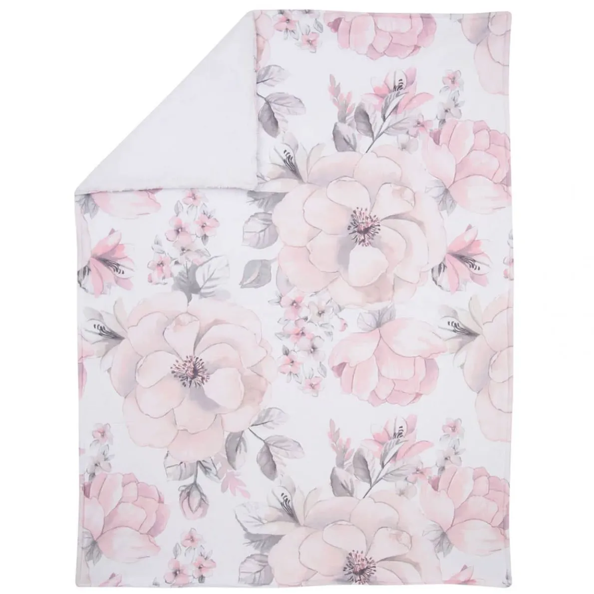 - Watercolor floral minky front with white sherpa fleece back