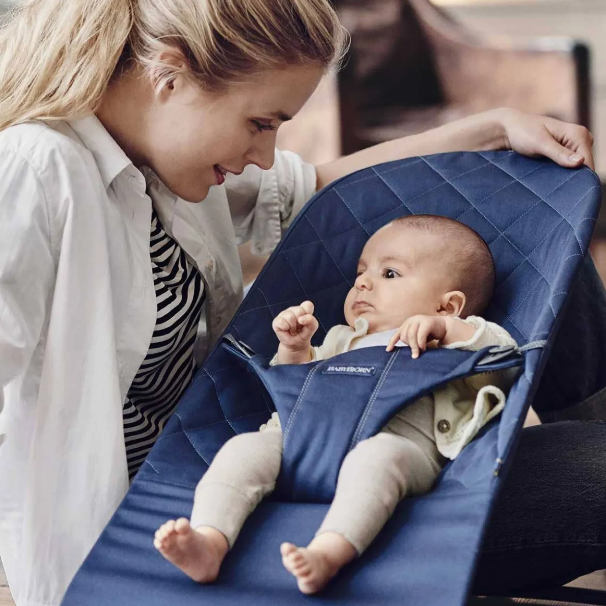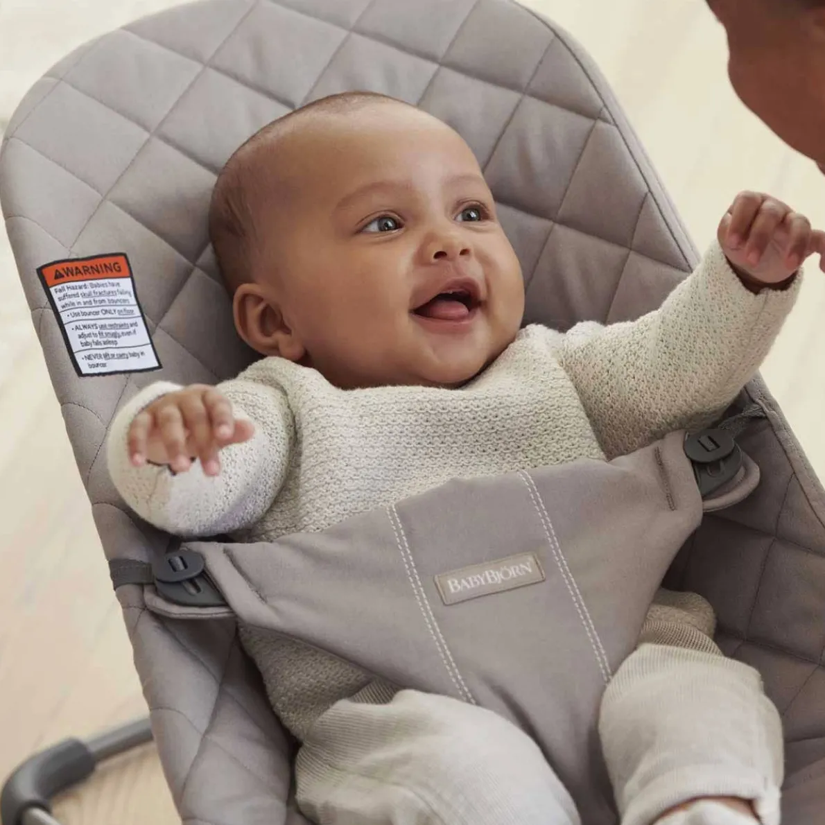 Bouncer Bliss (Classic Quilt) is award-winning baby bouncer in a new design. The gray base and frame creates a soft impression, and the quilted, monotone fabric seat has a luxurious feel and will be an attractive detail in your home. The baby bouncer allows your baby rest or play safely, giving you time to shower or prepare a meal.