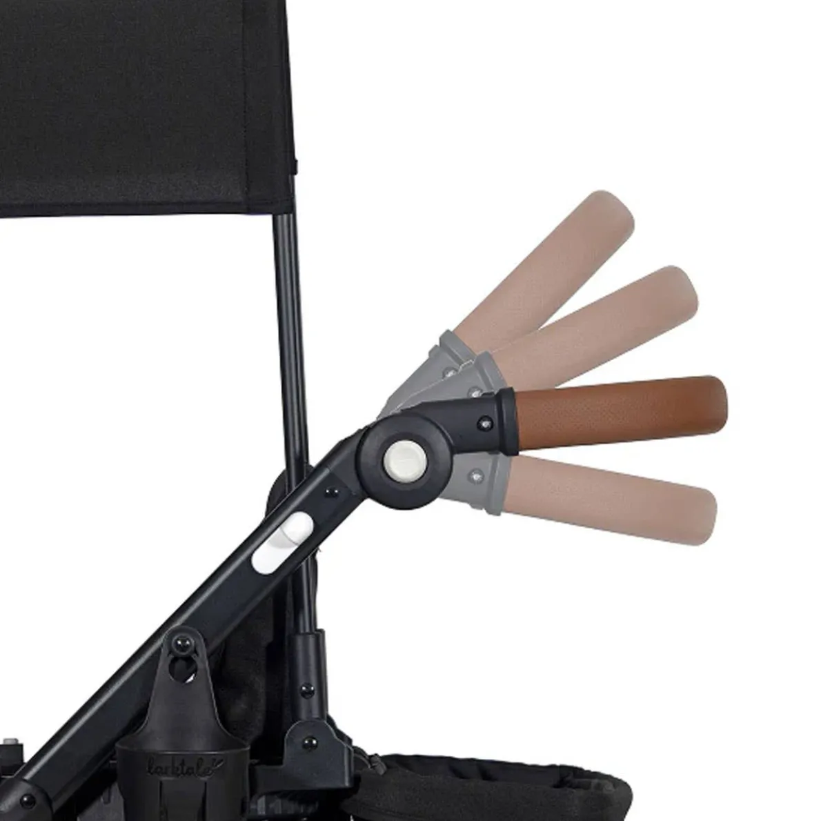 The Larktale caravan coupe LTE offers a lightweight and streamlined design for busy parents seeking a compact stroller wagon that folds small and fits in most vehicle trunks. Suitable for children from 6 months to 50 lbs per seat, the caravan coupe LTE will comfortably seat up to two growing kids on raised seats, offering a comfortable foot-drop for stroller-style seating. Perfect for one or two passengers, parents can easily remove one seat for extra cargo space while their solo rider is buckled in. The caravan coupe LTE includes an airy sun topper sun canopy folds flat with the wagon, promotes continuous airflow within the wagon and helps parents keep an eye on their seated passengers. Parents will also love the under-seat storage space that is accessible from outside the wagon, the height-adjustable leatherette handlebar, the included cup holder, and Larktale’s celebrated all-wheel suspension system. While the seats are intended for children 6 months and older, a car seat adapter is available to accommodate a newborn (sold separately). The impressively compact fold of the caravan™ coupe LTE is a game changer for families that want a stroller/wagon but are short on vehicle trunk space, or storage space in their homes.