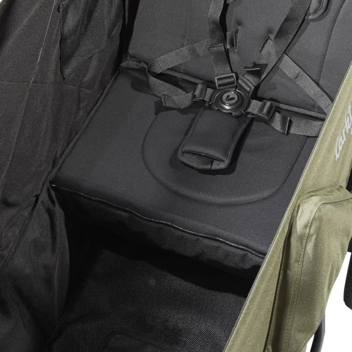 Suitable from 6 months to 93 lbs per seat, the caravan V3’s roomy interior can fit up to 4 passengers using Double Seat Kits (sold separately) and can even safely accommodate a newborn using a caravan car seat adapter (sold separately). If you need space to haul cargo or let your little ones stretch their legs, simply attach the included footwell cover to provide a secure flat base interior to suit your needs. Parents will also love the height-adjustable leatherette handlebar, multiple storage compartments, self-leveling cup holder, large rubber wheels, and the all-wheel suspension system.