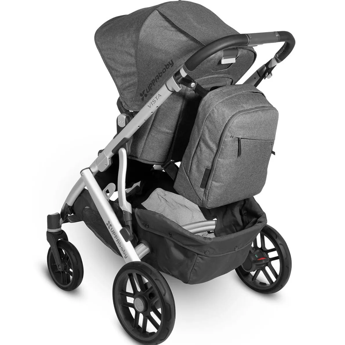On your back or on the stroller, store all your on-the-go needs in UPPAbaby’s chic Changing Backpack. Its premium fabrics and leather detailing coordinate beautifully to your UPPAbaby stroller, while adjustable straps and multiple storage compartments help you gear up and head out in style.