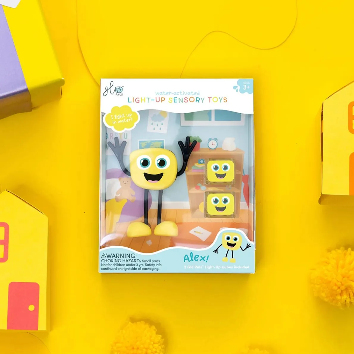 Insert your Glo Pals Light-Up Cube into the back of each Pal, drop it in the water, and watch it light up! Featuring bendable arms and colorful personalities, each Pal proudly illustrates the uniqueness in every child. Alex comes with2 Glo Pals Light-Up Cubes included in the box!