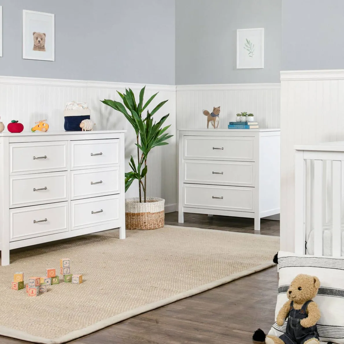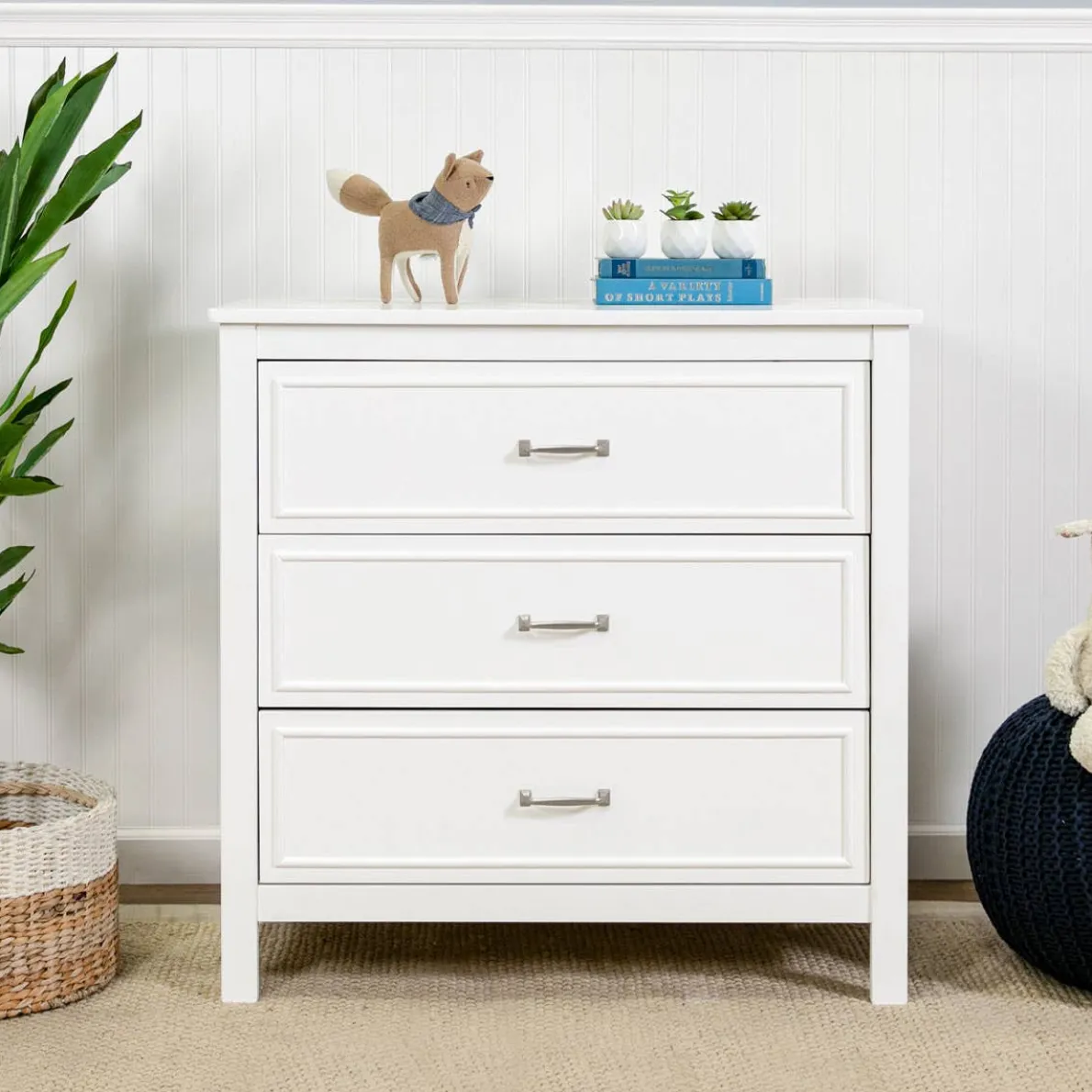 The Charlie 3-Drawer Dresser is the perfect accent piece for your nursery or any room in your home. It features three drawers with generous storage capacity and classic metal pulls. With its timeless design, this dresser will complement any bedroom furniture.