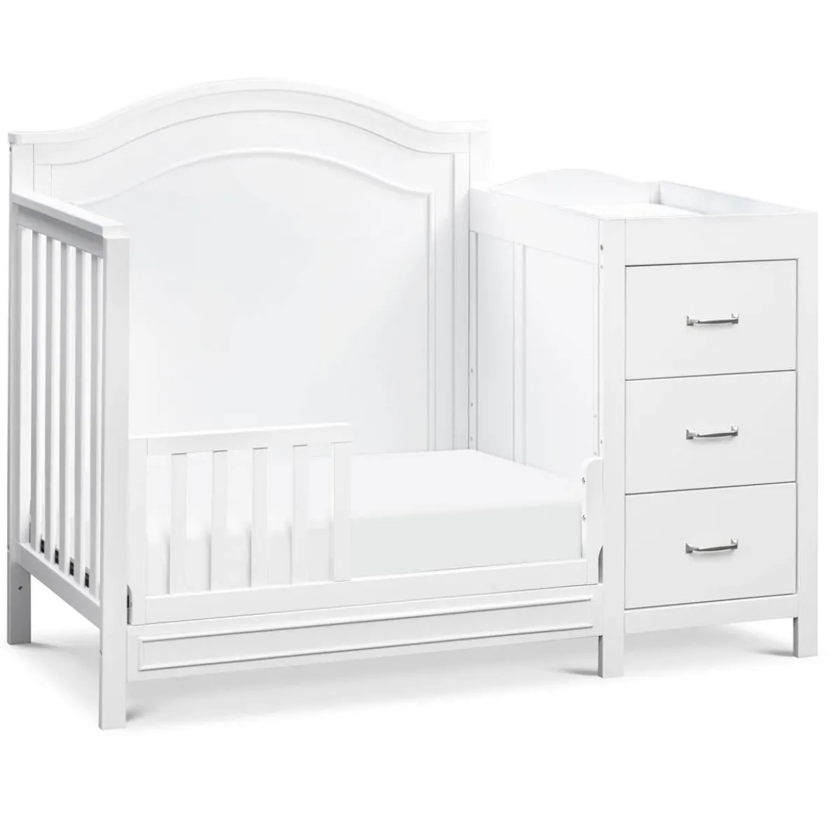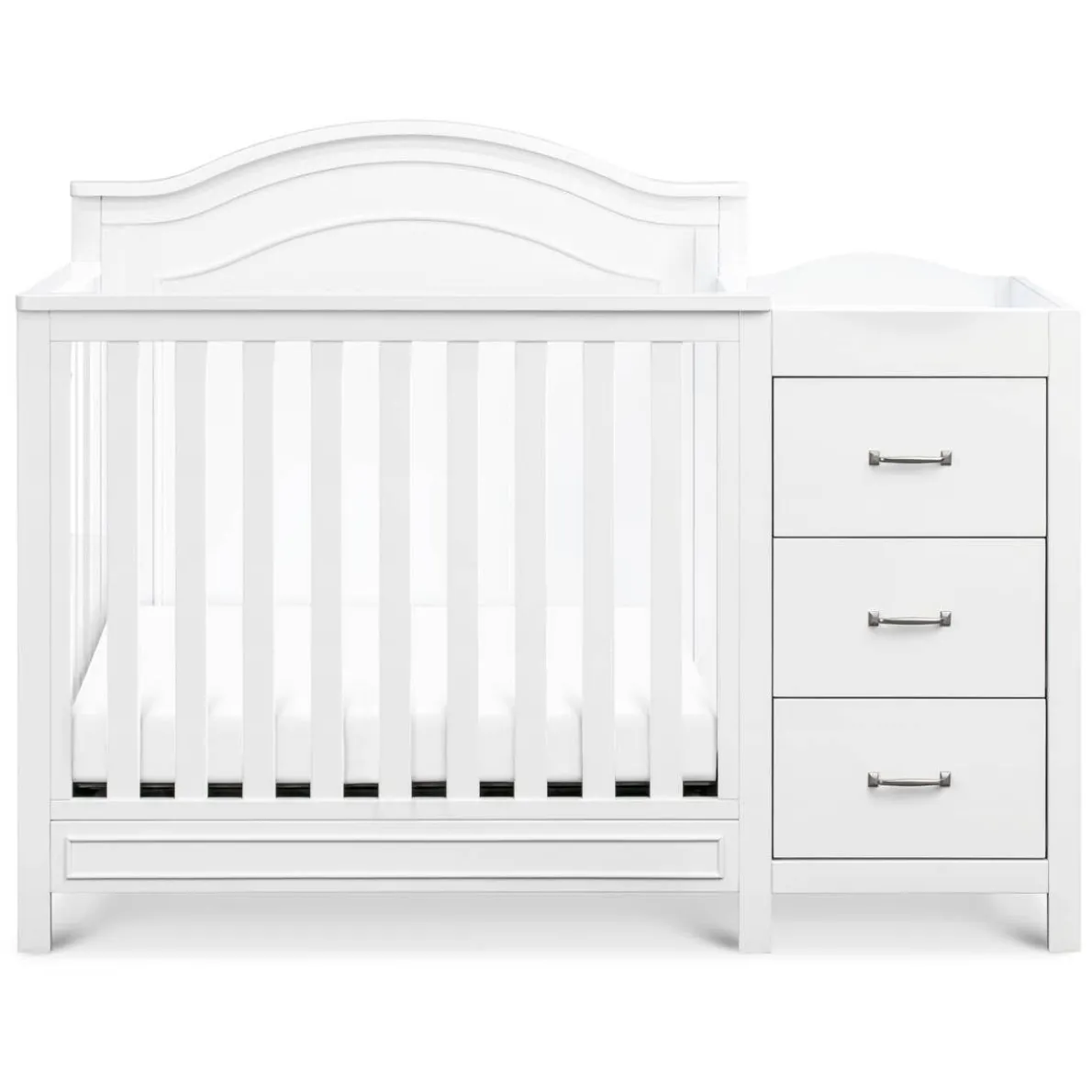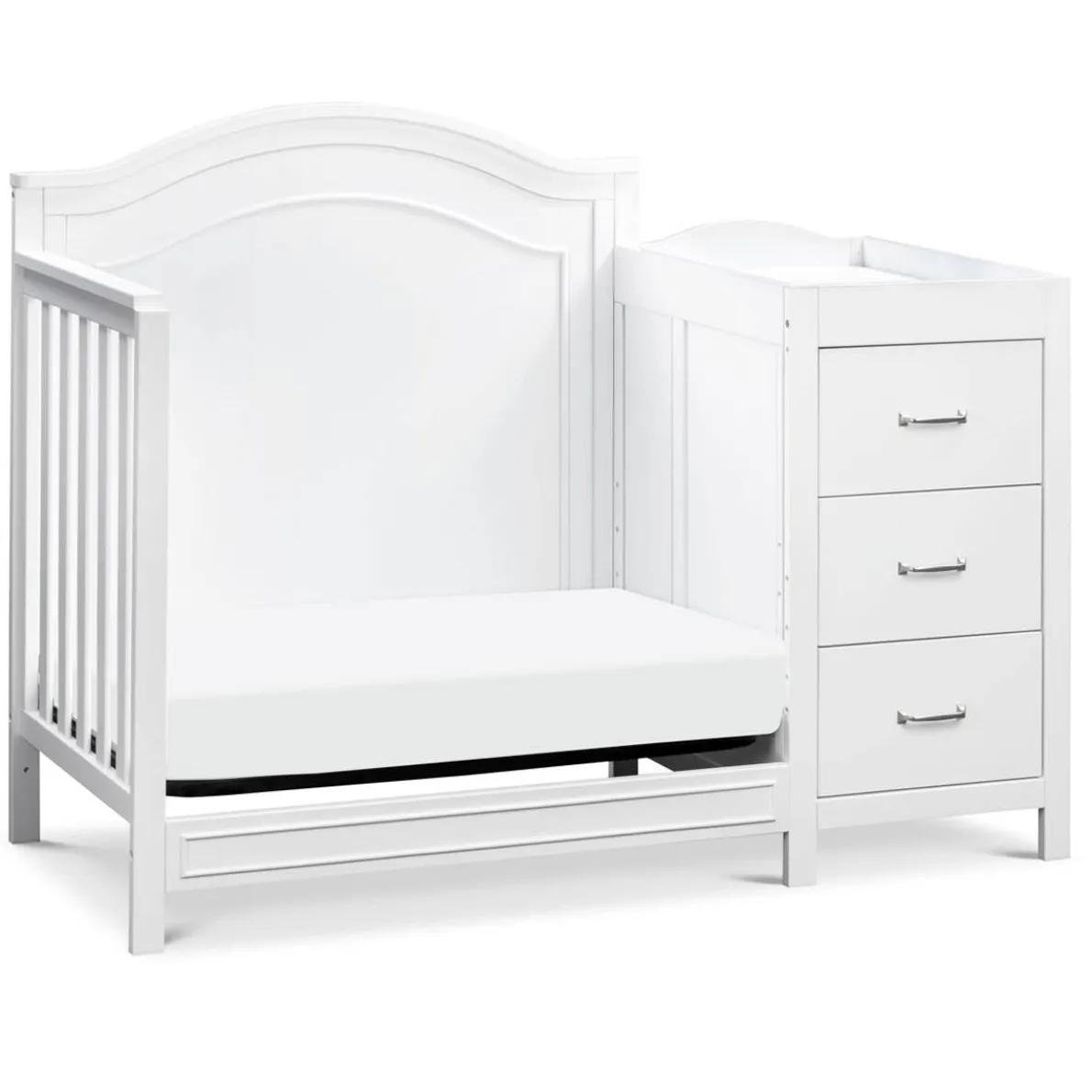 The Charlie 4-in-1 Convertible Mini Crib & Changer is a beautiful, comprehensive solution for any stylish nursery. Its compact size helps maximize smaller spaces, so that your baby has more room to play and grow! Beyond the nursery years, this crib converts to a mini toddler bed, day bed, and twin-size bed with detached nightstand.