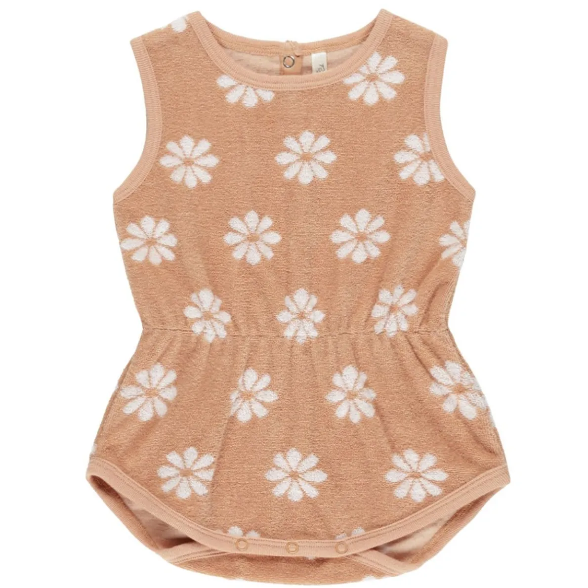 A summer classic, this sleeveless playsuit features a cinched waist and bottom snaps for easy changes.