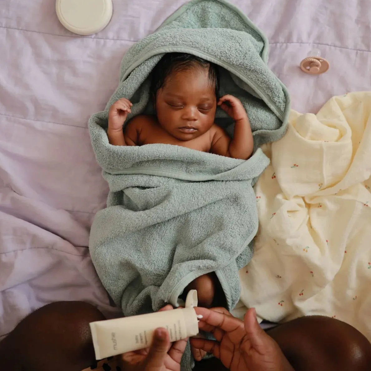 Made from 100% organic cotton, our hooded towel is gentle on sensitive skin and perfect for cozy cuddles after bath time. The fabric is absorbent and durable, staying soft wash after wash.