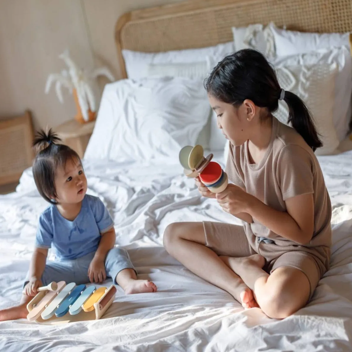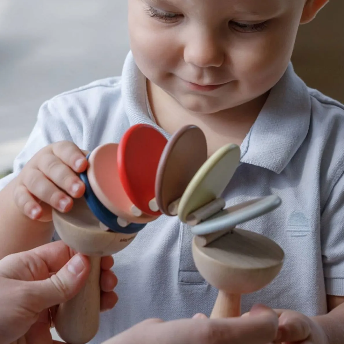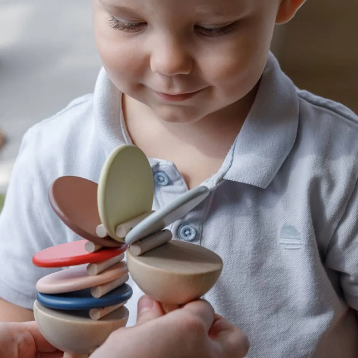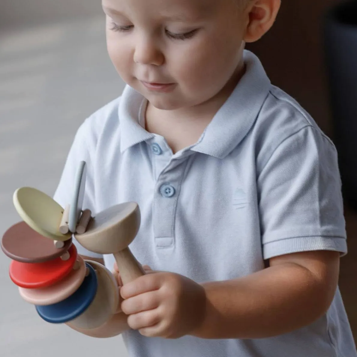 Using an alternating up and down motion with both hands, the toy’s colorful segments will create various click-clack sounds.