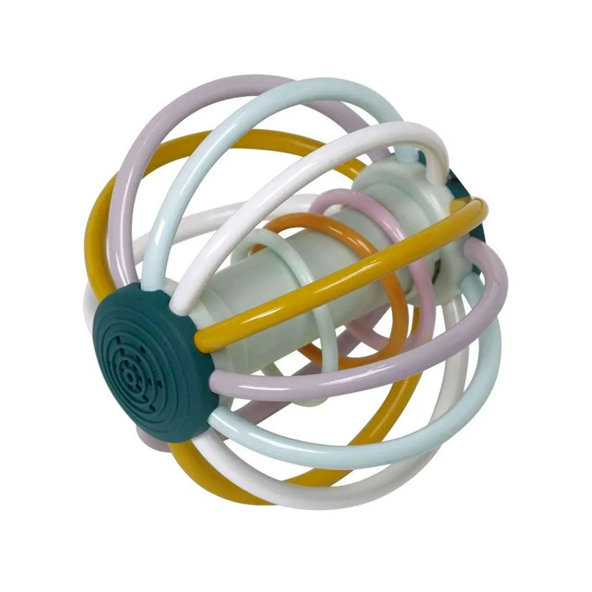Sure to be a baby favorite for teething, grasping, shaking, and rolling. The Comet Teether features flexible tubes with plastic clacking rings. Plus, every shake reveals a chirping sound. This playful teether toy encourages motor skill development, teething, and cause-and-effect learning.
