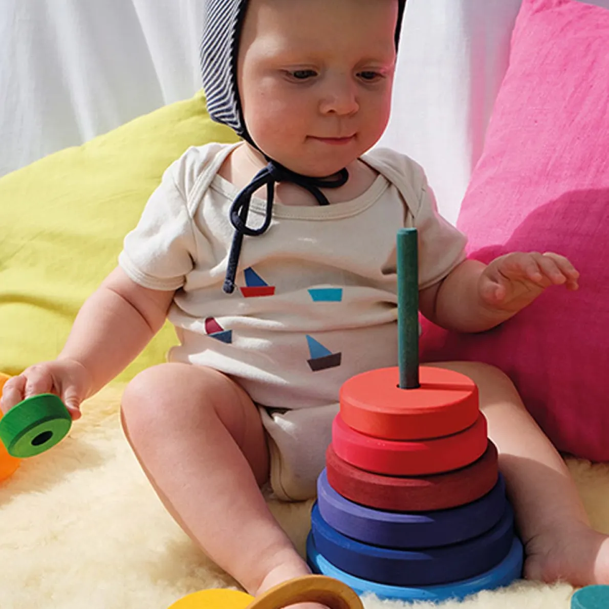 With the large Conical Tower the children can sort, stack and build. While stacking, the eye-hand coordination is stimulated and fine motor skills are trained. Ten discs for stacking.
