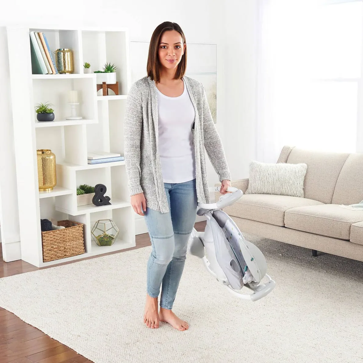 - Bring baby’s favorite seat on-the-go with this small baby swing