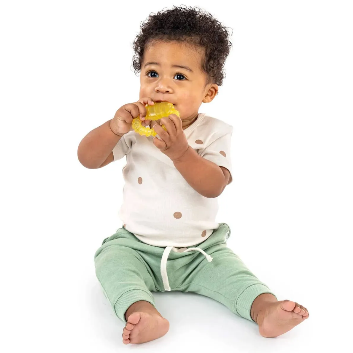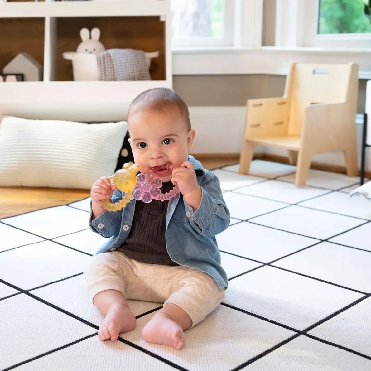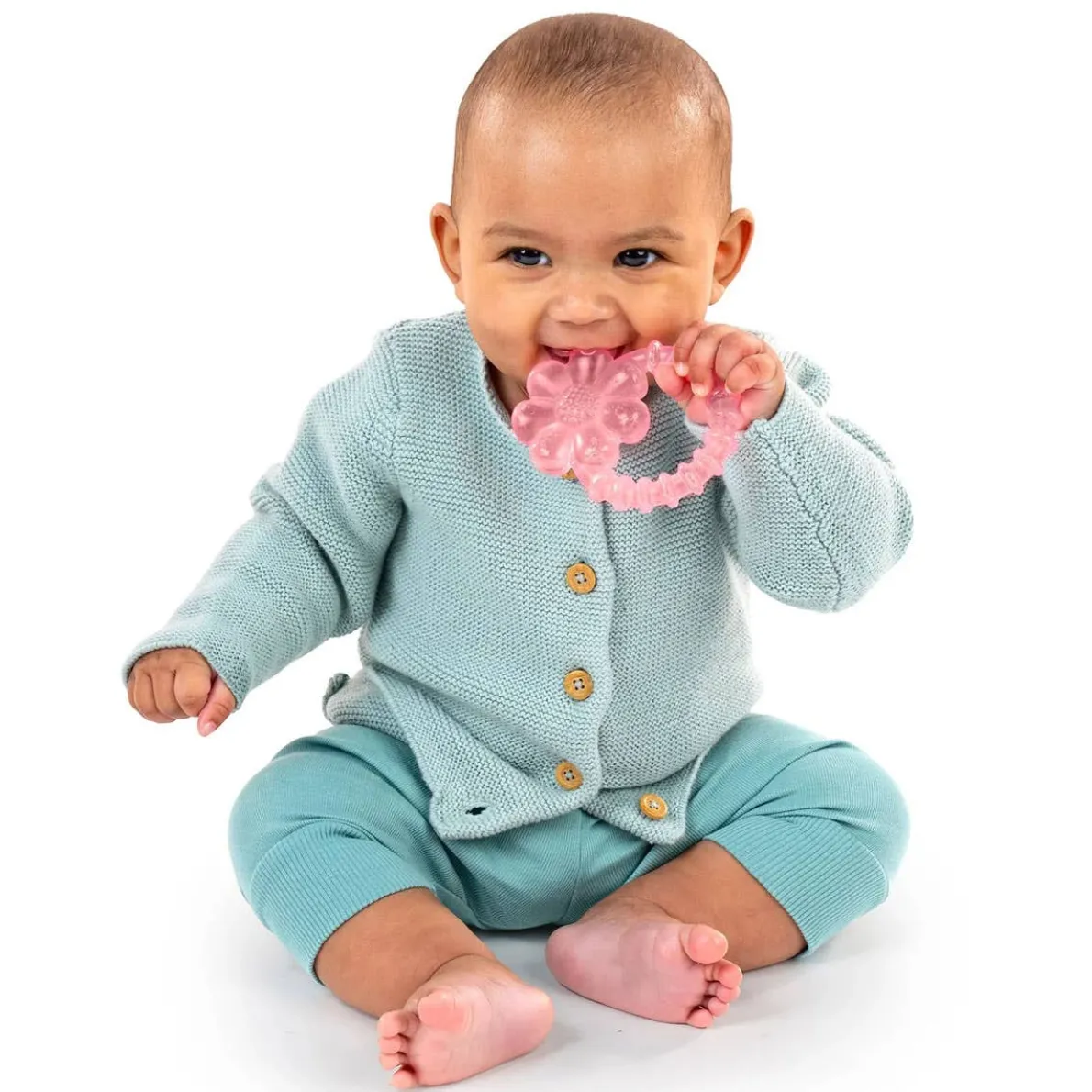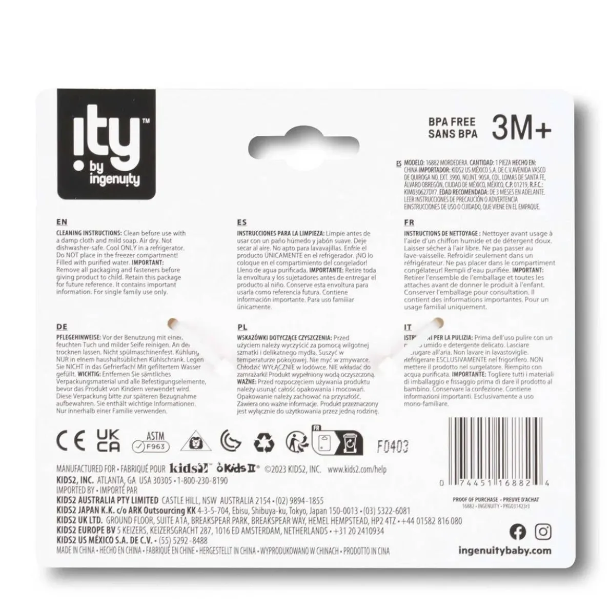 Keeping your child comforted is among the top goals of parents, especially in baby’s first year. The ity by Ingenuity Cool Bite Water Teether – Daisy and bomby massages emerging teeth and sore gums. This BPA-free teether is safe for baby to self-soothe has multiple textures to bring relief to achy gums?. Baby will love the teether’s soft pastel pink color and cute daisy flower. For added relief, this water-filled teether can be placed in the refrigerator until chilled so baby has something cold and soothing to nibble on for comfort. The teether’s easy-to-grasp design fits perfectly in baby’s tiny hands and is compact enough to store away in diaper bags and purses. The daisy teether is part of a collection of fun ity by Ingenuity woodland-inspired toys and pairs well with the Cozy Coo pacifier characters Bomby the bumblebee and Nally the owl. Be sure to wipe the teether clean before use. The ity by Ingenuity Cool Bite Water Teether – Daisy is a baby shower registry essential excellent for little ones ages 3 months and up.