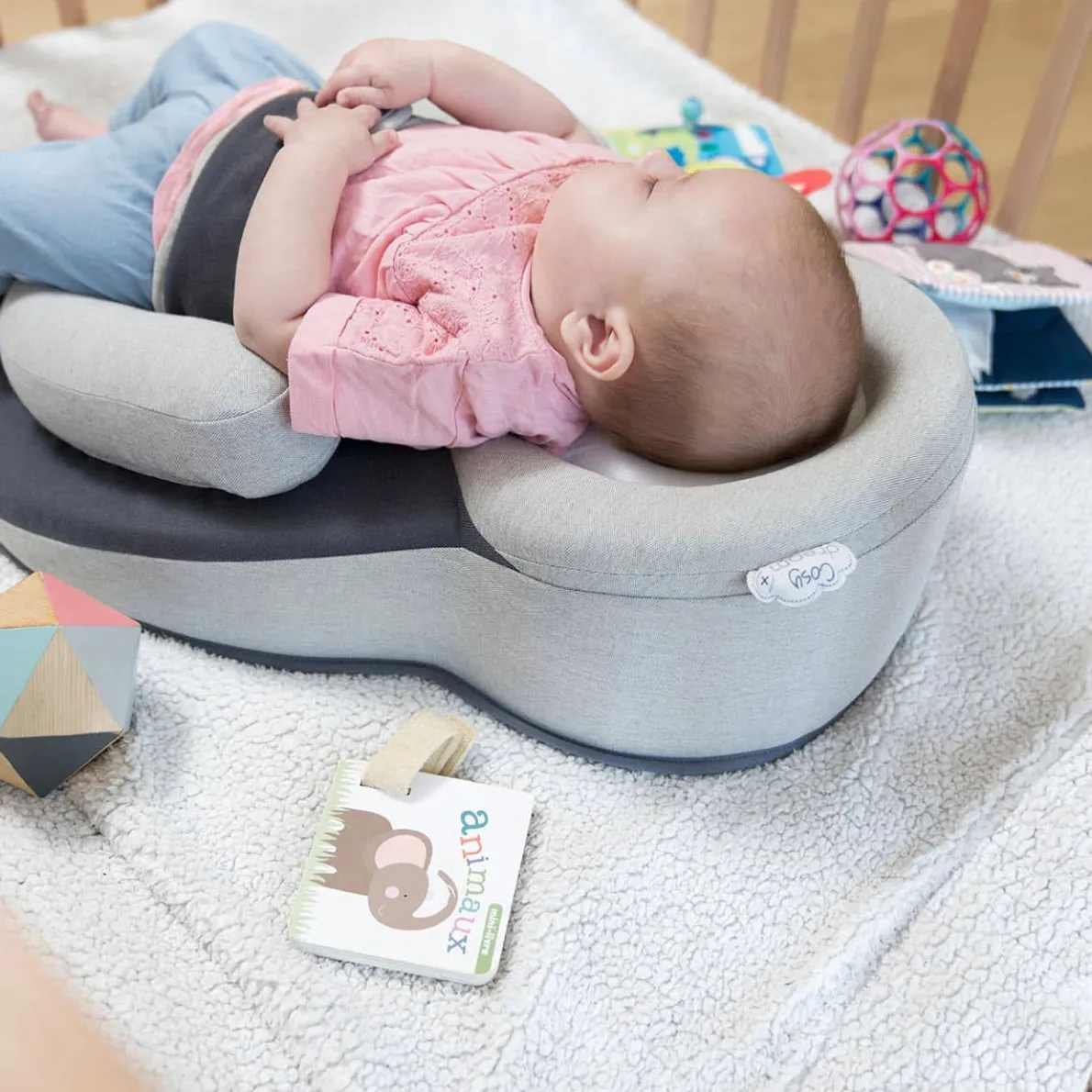 Your baby can easily be disturbed by minor complaints: colic, regurgitation, blocked nose…Relax – Babymoov’s Cosydream Plus lounger is just what you need! With its anatomical shape and support belt, the Cosydream Plus keeps your baby comfortably on its back (in accordance with WHO recommendations). Tilted at an angle of 10°, it keeps your baby’s airways clear and reduces regurgitation. And to aid digestion, the adjustable microbead-filled positioning roll raises your little one’s legs. This “tuck position” keeps babies in place and reminds them of their nine months in their mom’s womb. And there’s another special feature – the Cosydream(+) includes an anatomical headrest. Designed with your baby’s body shape in mind, a choice of soft and breathable materials… everything has been created and approved with our co-creator parents.