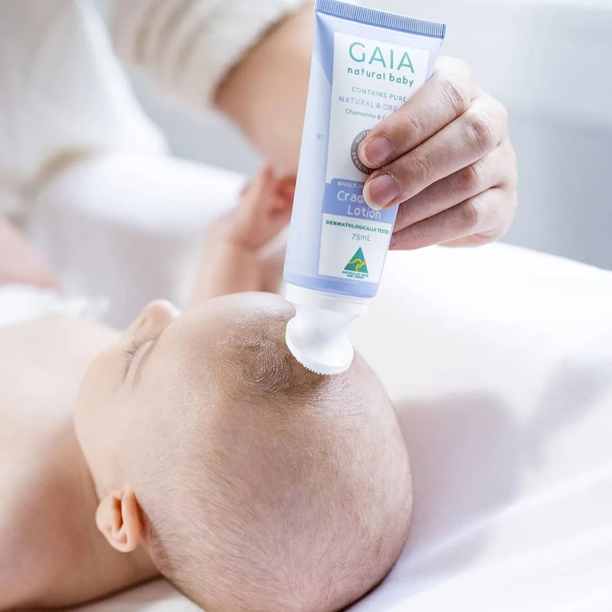 The GAIA Natural Baby Cradle Cap Lotion is pH balanced, non comedogenic and free from petrochemicals, parabens, phthalates, mineral oil, propylene glycol, nut oils, artificial colours and fragrances.