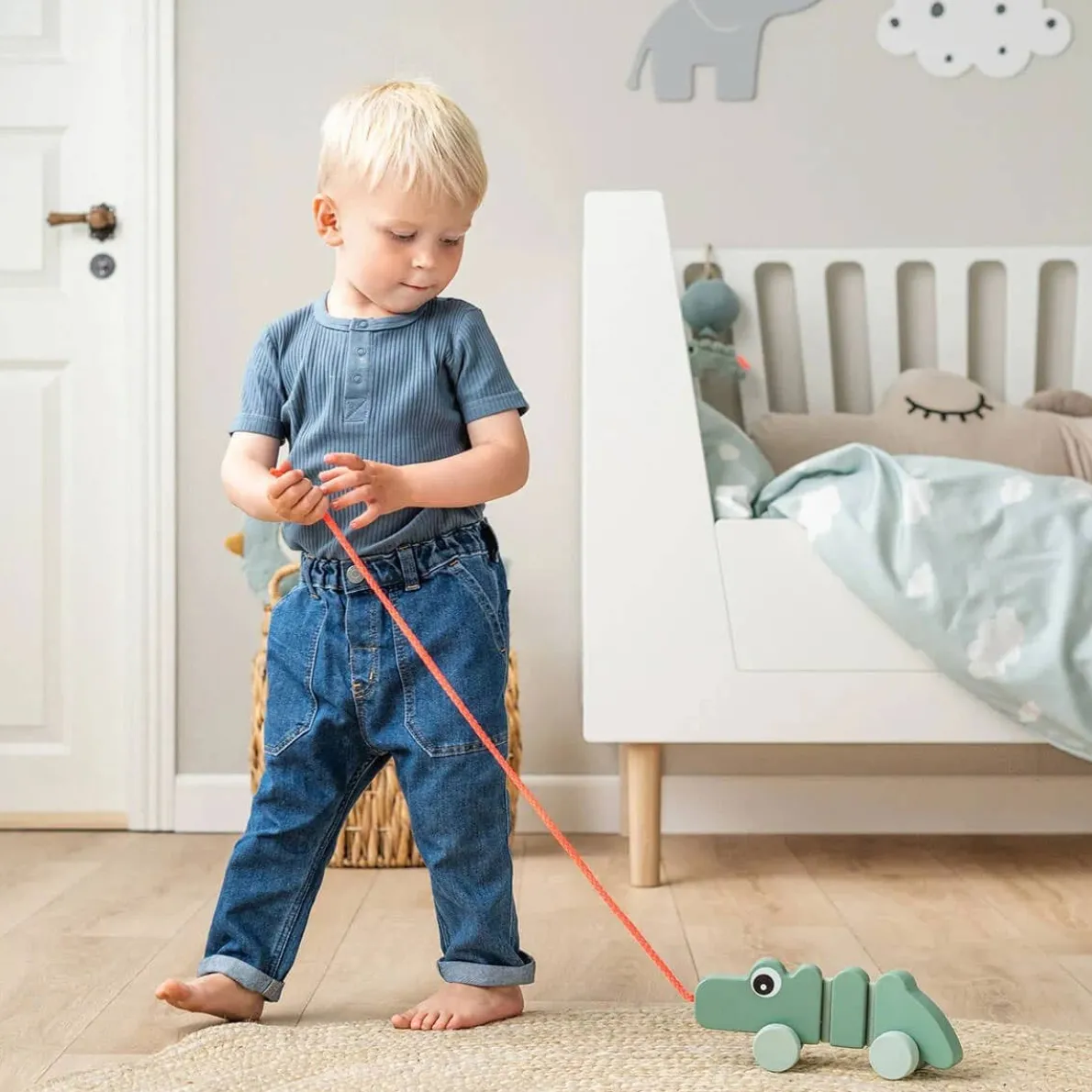 Discover the Done by Deer Pull Along Wiggle Toy Croco perfect for children 12 months and up! Croco’s body has soft wheels and a wobbling body. The Done by Deer Pull Along Wiggle Toy Croco motivates your little one to walk and play imaginatively.