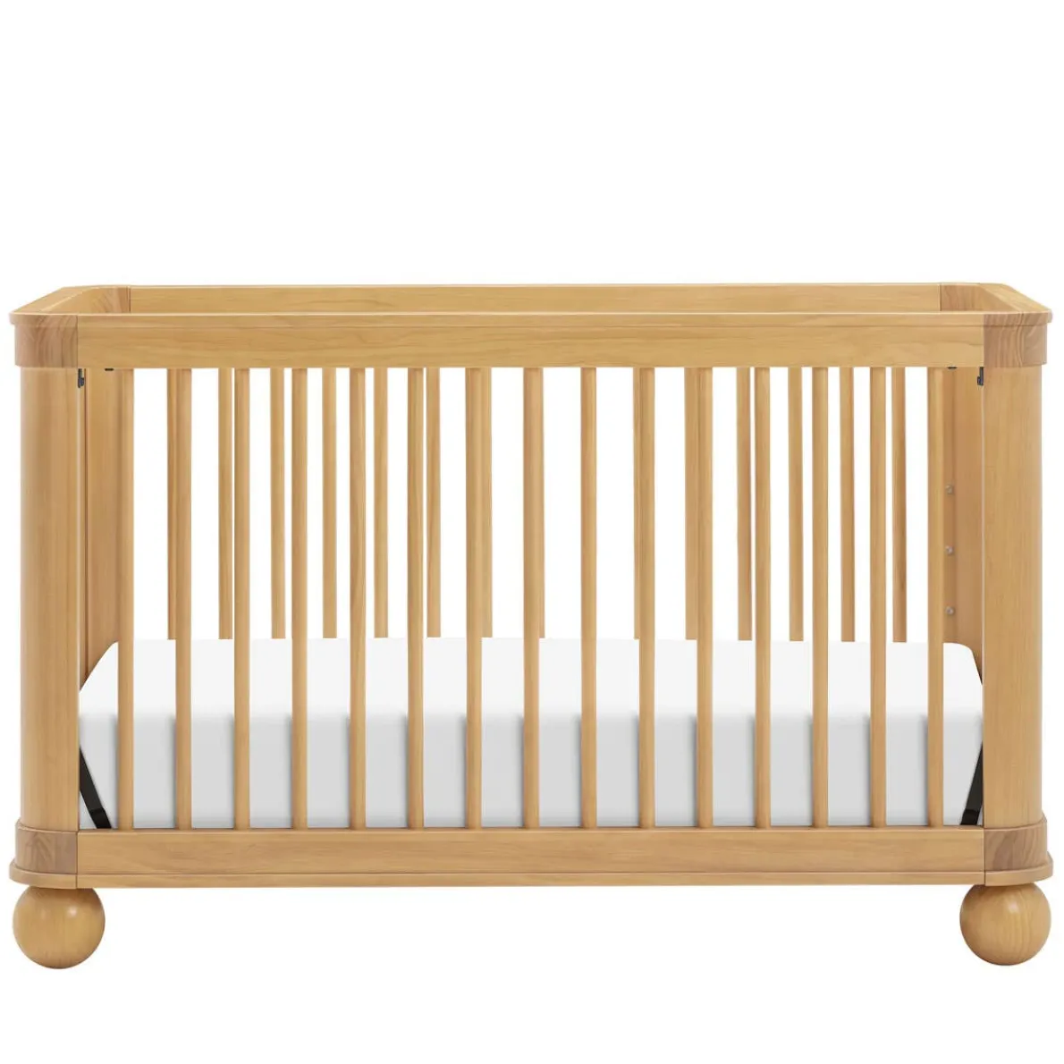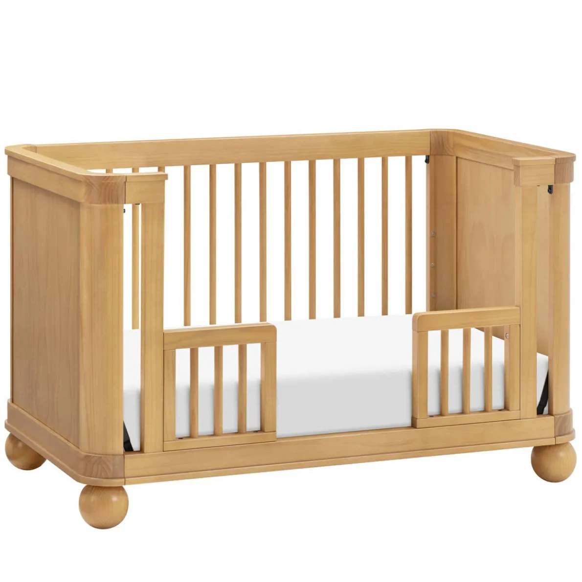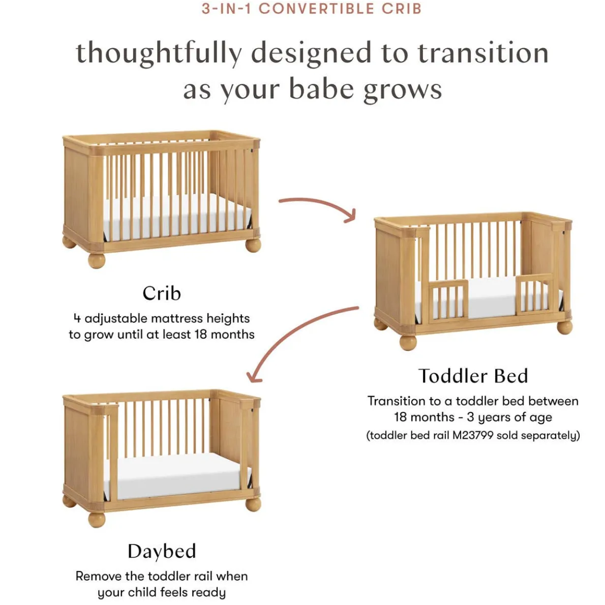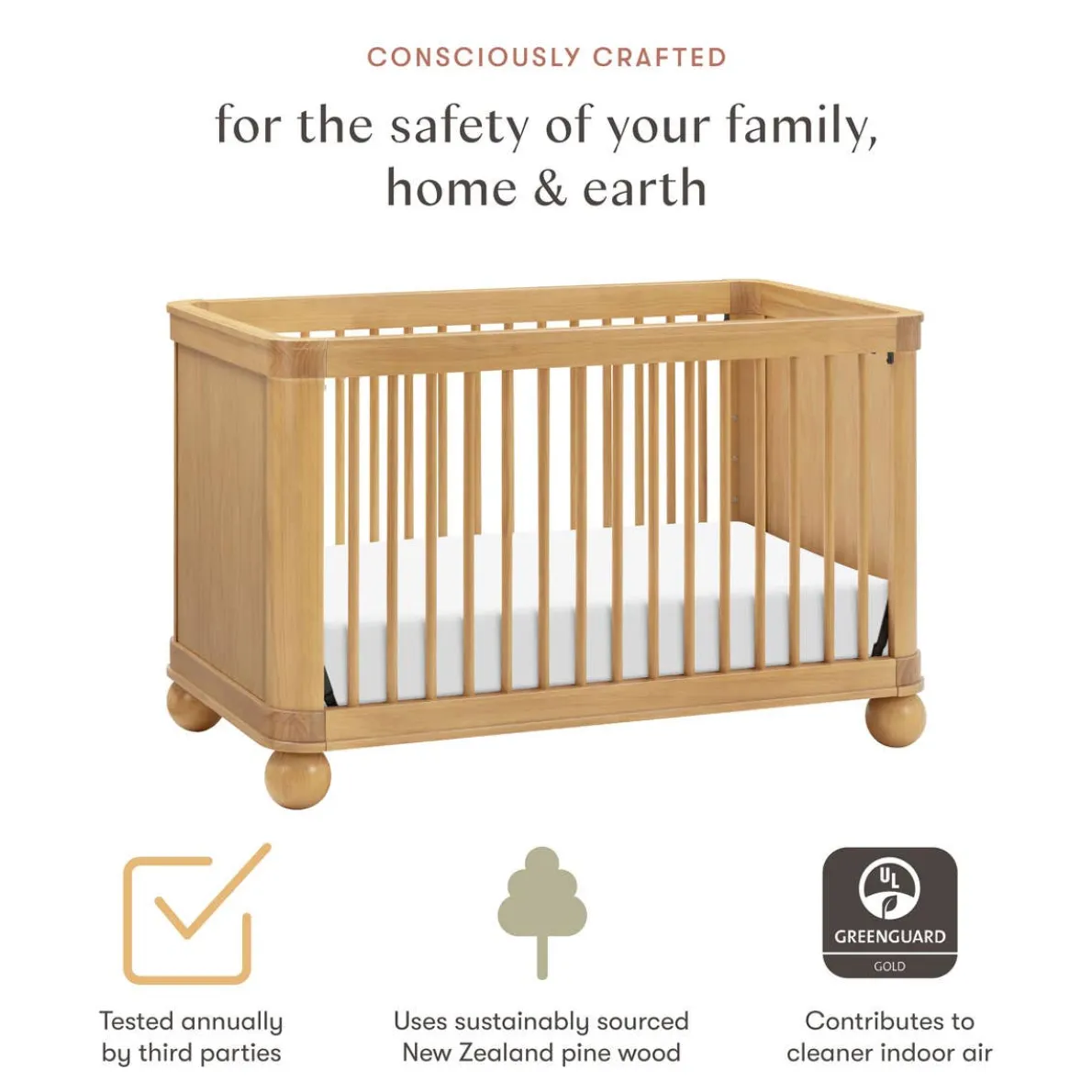 Blending classic design with contemporary elements, the Crosby 3-in-1 Convertible Crib provides both style and function to your home and nursery. With its gently curved silhouette and whimsical rounded ball feet, this crib is crafted with quality, sustainable materials and certified GREENGUARD Gold with your child’s safety in mind. Designed to grow as they grow, the Crosby is able to convert from standard crib to a toddler bed and daybed to best fit your needs for years to come.