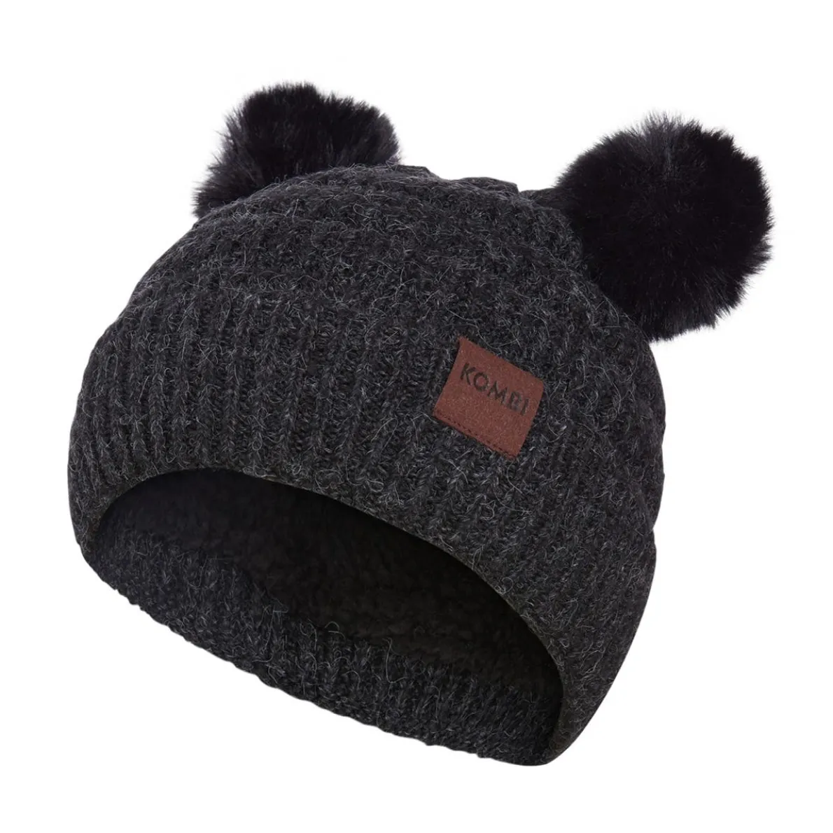 Get ready to bear the cold with this cute kids’ winter hat! Featuring two adorable faux-fur pompoms that look like little bear ears, The KOMBI toque is made with a blend of recycled polyester yarn and wool for more warmth. With a super-soft sherpa lining, this fully fashioned pompom hat will keep your little one cozy whether they’re playing in the snow or running errands with you.
