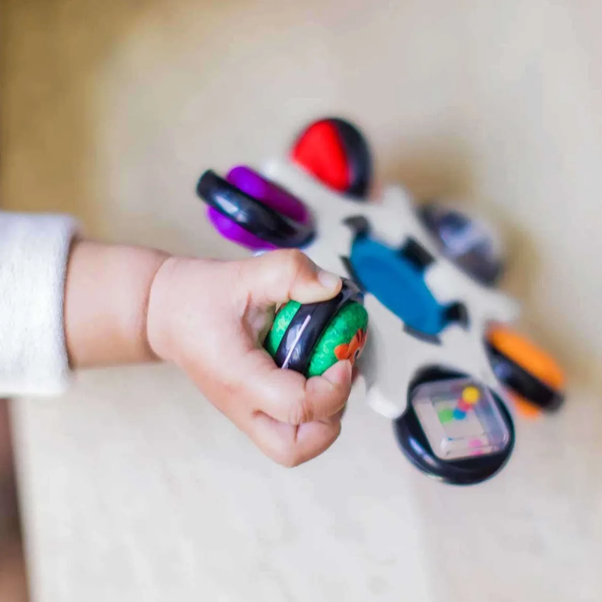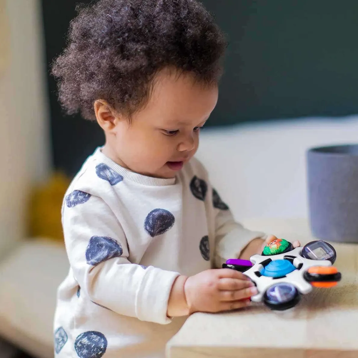 - Keeps baby curious – From grasping to popping, from pressing to twisting, baby will stay busy and entertained as they explore all the gadgets on their Curiosity Clutch