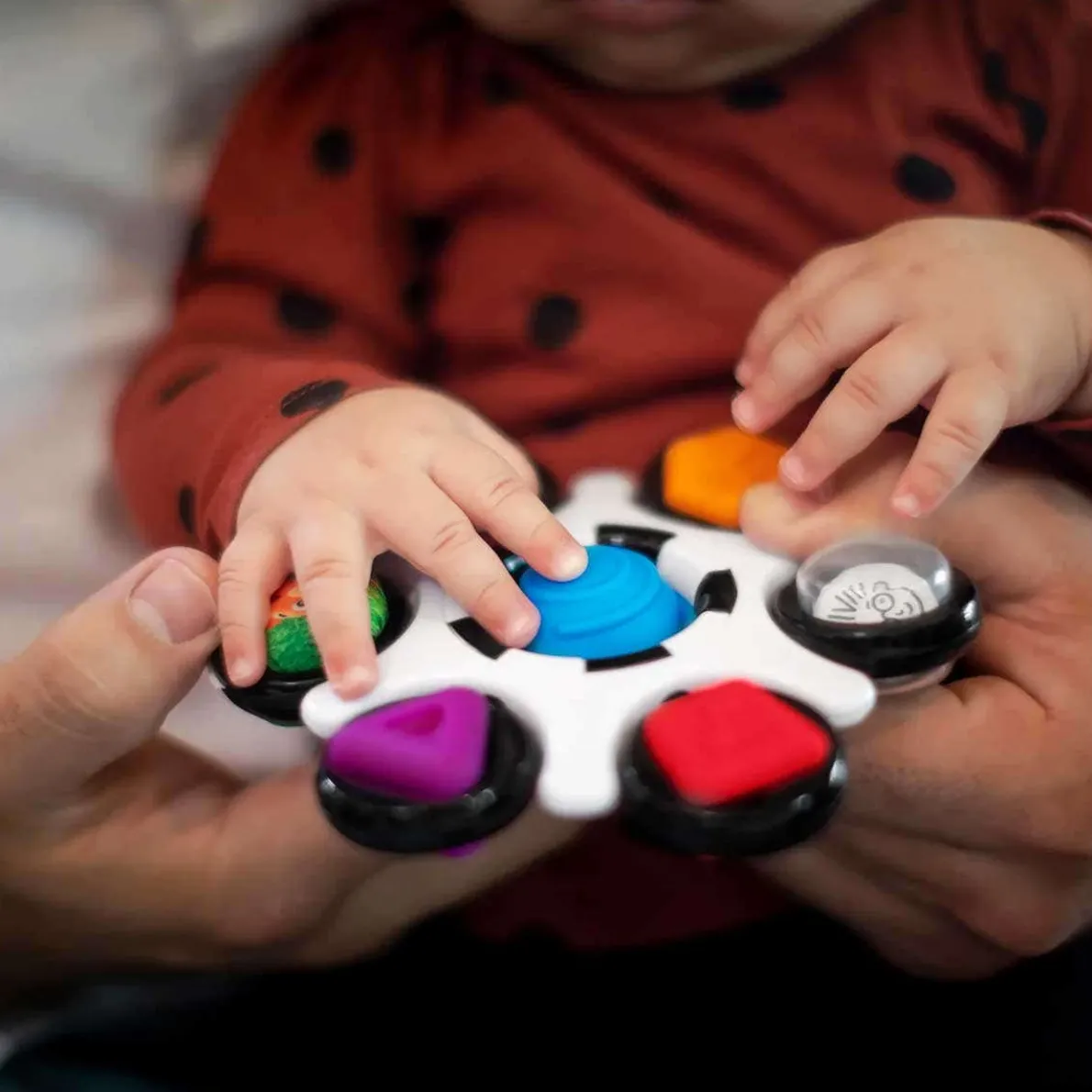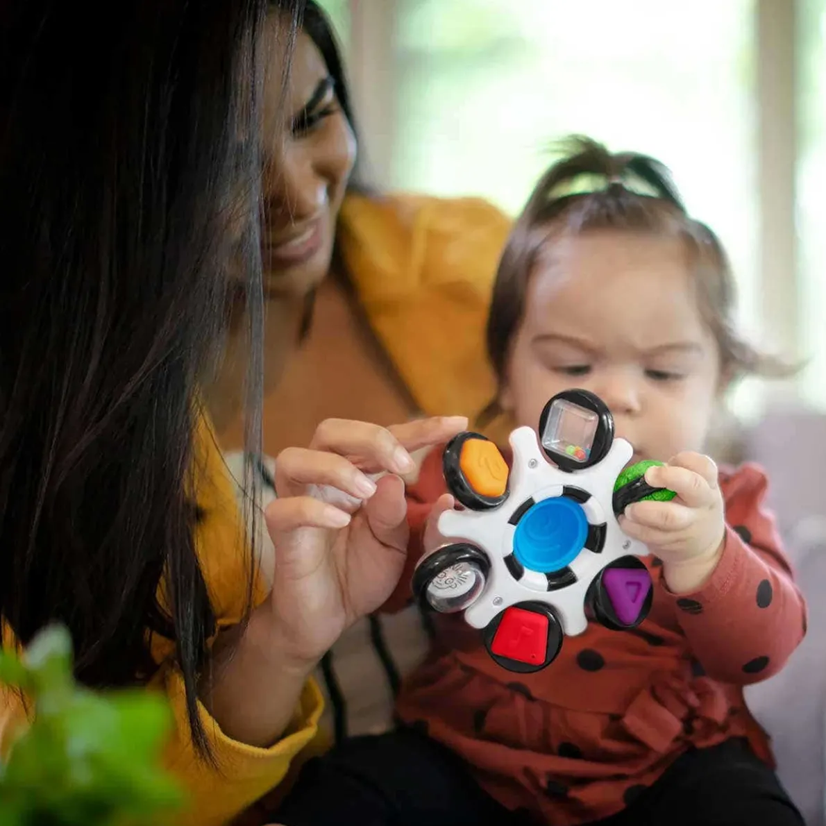 - Sparks open-ended play – 6 unique activities extend from the toy ring, inviting your little one to interact with them in endless combinations using their two little hands