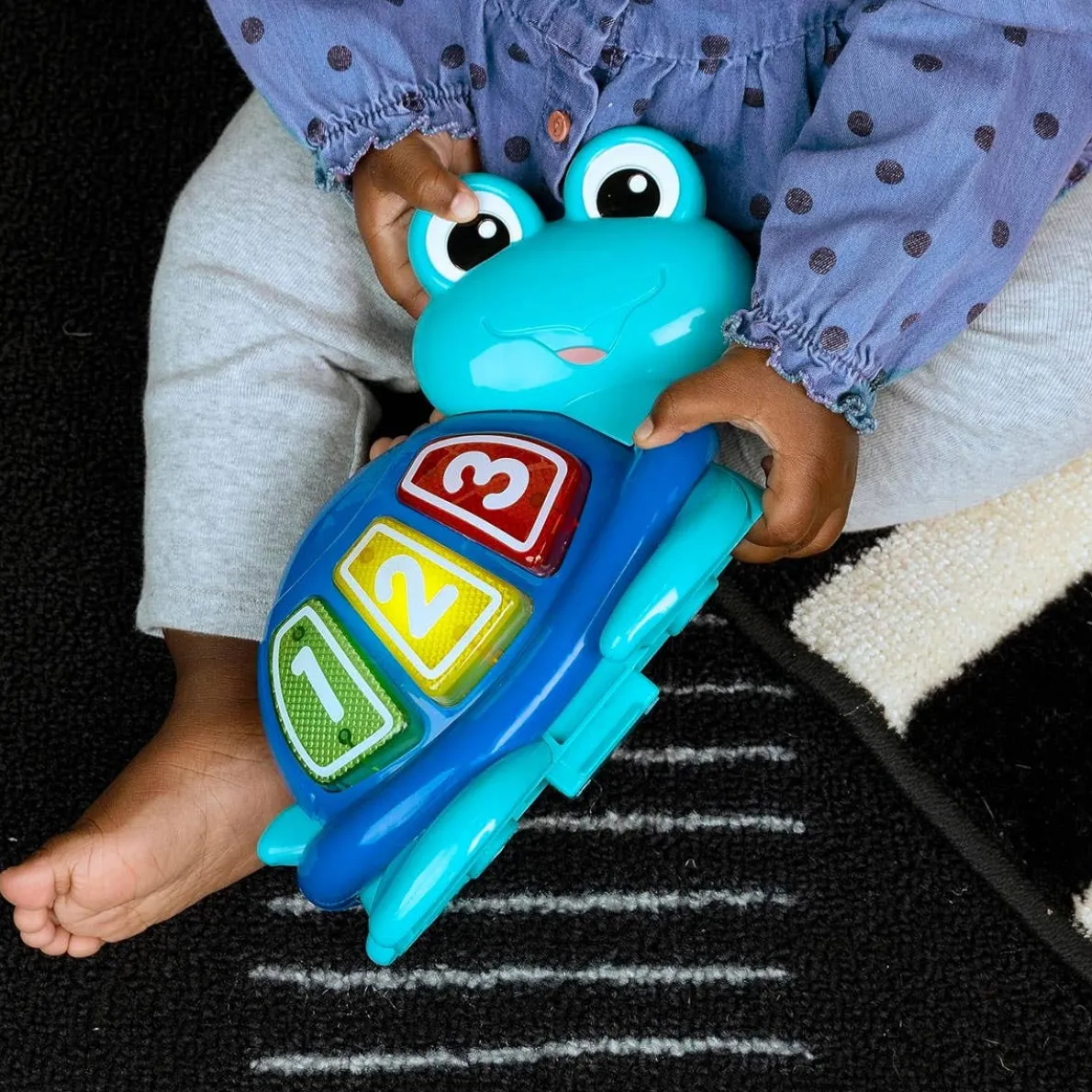 - Removable Neptune the Turtle toy lets baby explore music and learning content during floor play or on the go; Machine washable seat pad; Requires 3 AA batteries (not included)