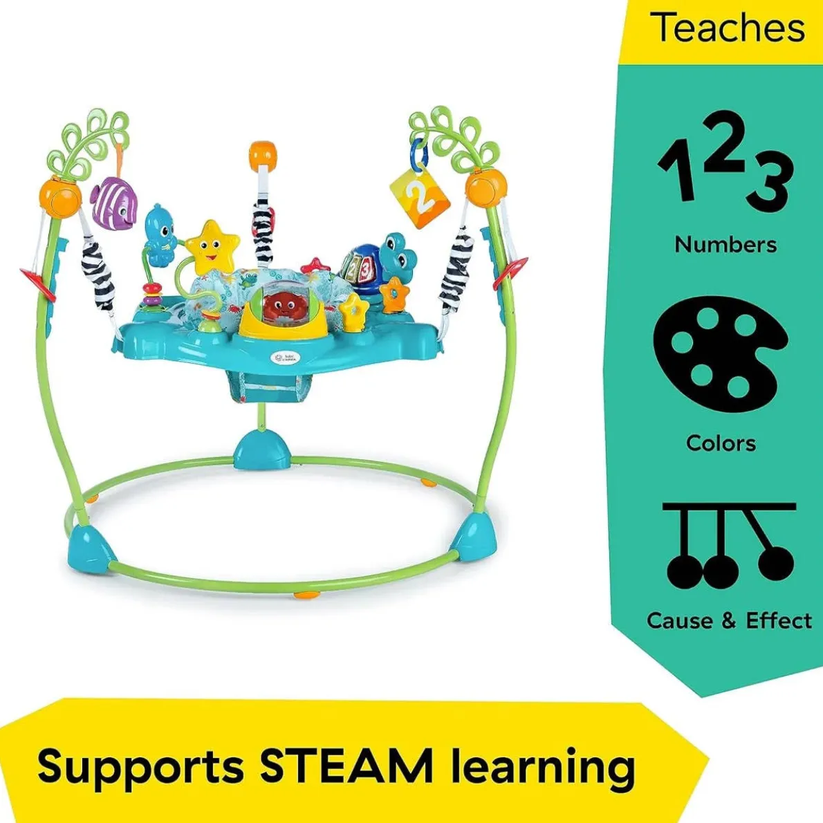 - The Baby Einstein Curiosity Cove is a 2-in-1 activity jumper for ages 6 months to 1 year that encourages baby’s sensory exploration with lights, music, and ocean sounds