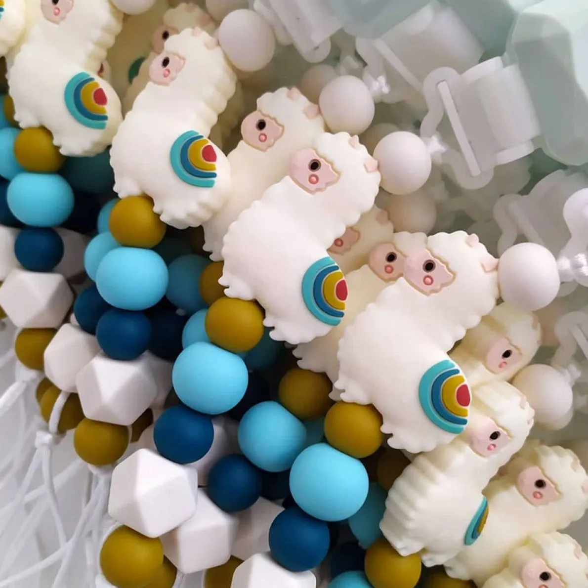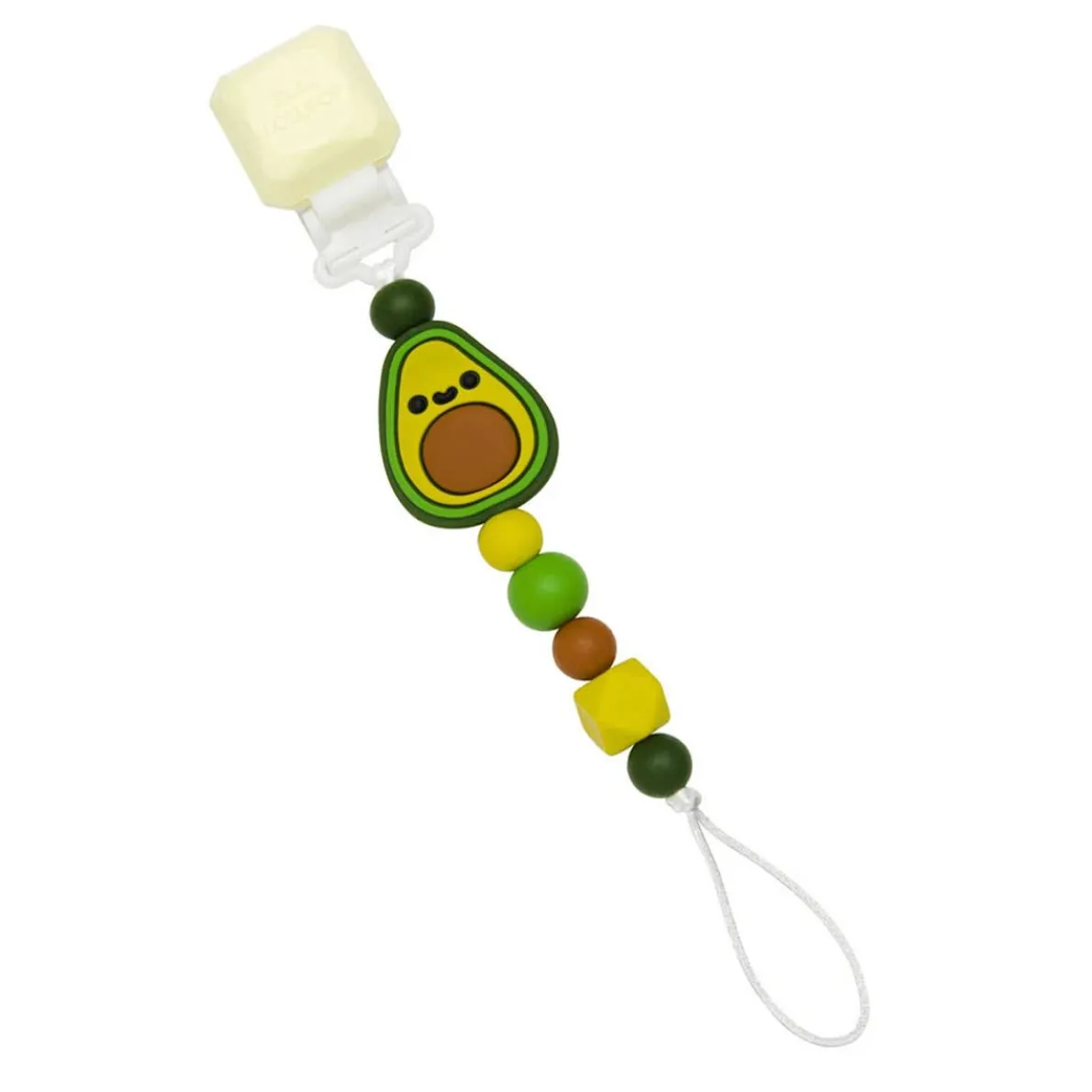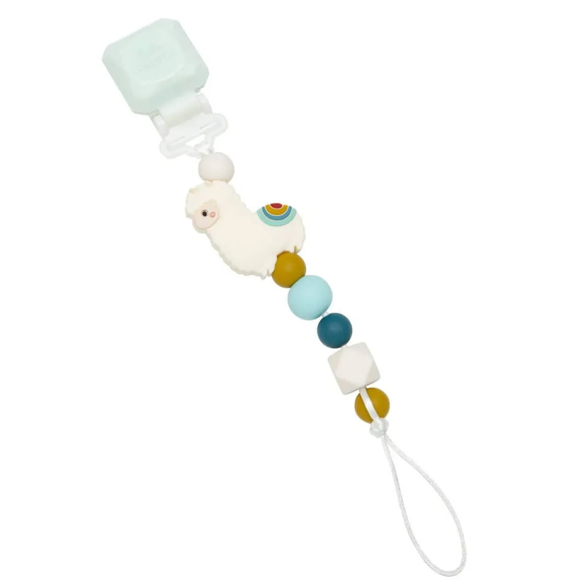 The popular pacifier clip is designed to keep pacifiers, teething rings or toys close at hand (and off the floor!). Simply loop baby’s pacifier or toy to one end, then use the stainless steel clip to fasten the other end to clothing, blankets, car seats, strollers or diaper bags. With a new design, the clip is rust free, no lose pieces and it is safe to sanitize. Coupled with food-grade silicone beads and cute design for a teething-friendly design that both engages and soothes.